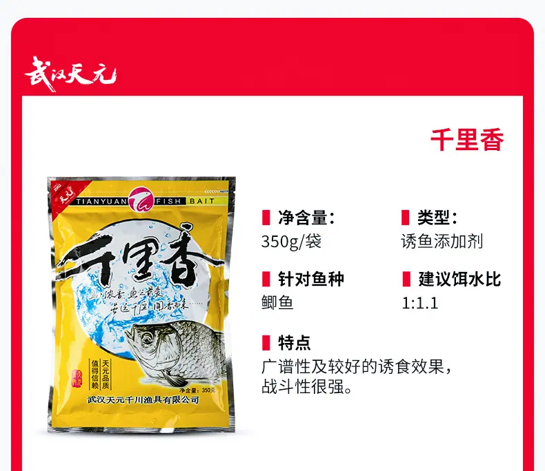Wuhan tianyuan qianli fragrant bait 350g large packaging strong fragrance fish food black pit wild fishing neu...