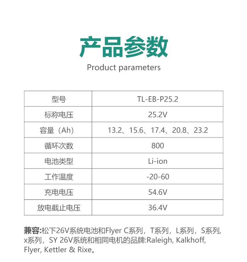 Electric bicycle battery 13Ah, Electric bicycle battery 15.6Ah, Electric bicycle battery 17.4Ah