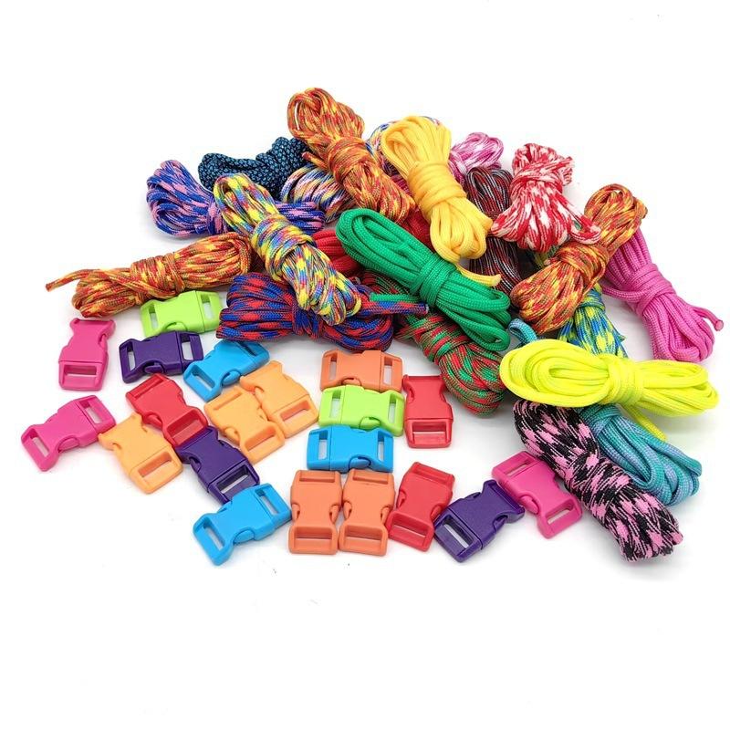 Set de Paracord de 3 Metros Cuerda de Amarre para Exterior 20 Paracords de Siete Hilos + 20 Hebillas Paquete de Materiales DIY Hecho a Mano Tienda