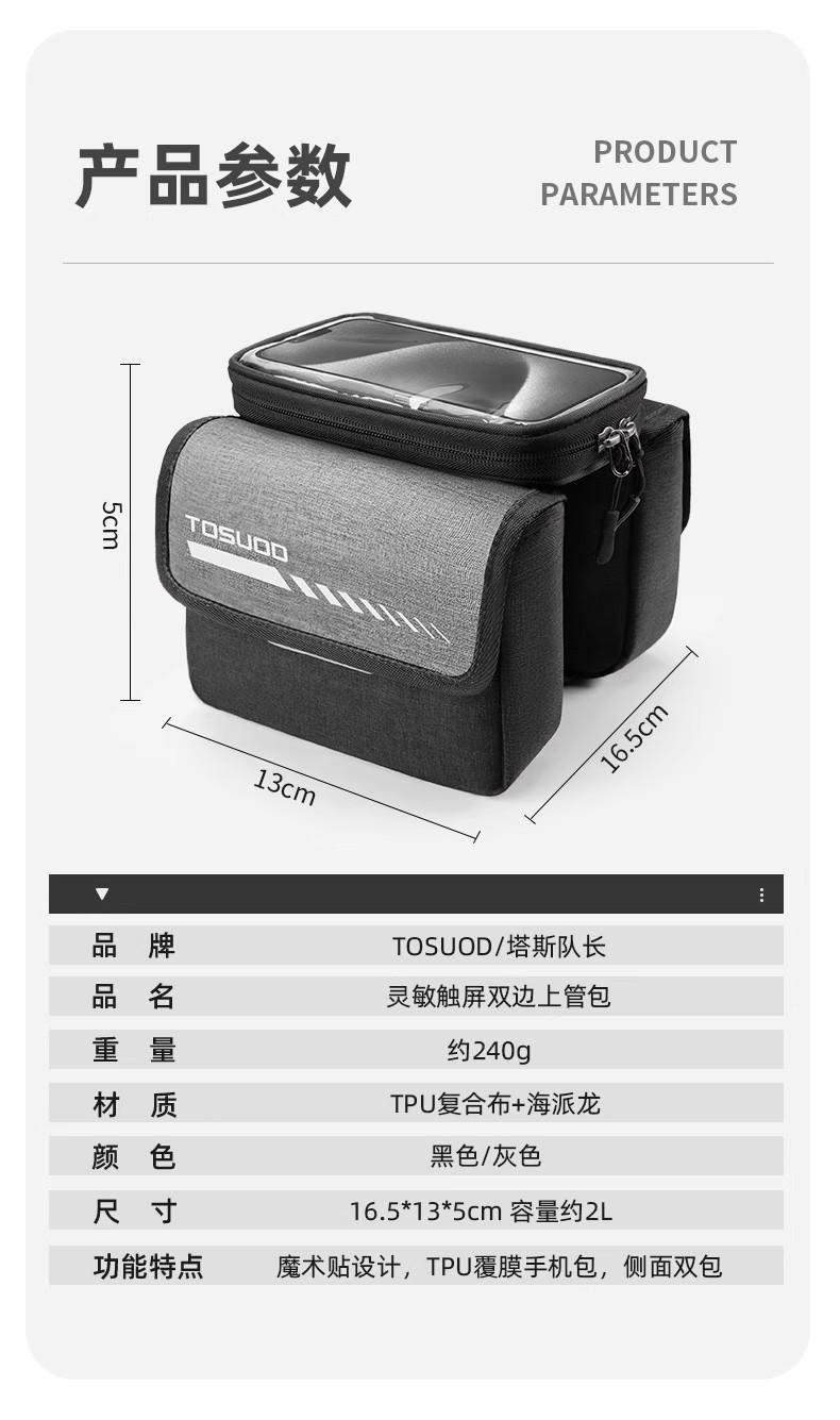 Bolsa para Bicicleta Tosuod Bolsa para Viga Delantera Bolsa de Tubo para Bicicleta de Montaña Bolsa para Teléfono Móvil Almacenamiento Impermeable Bolsa Delantera para Bicicleta Bolsa de Ciclismo