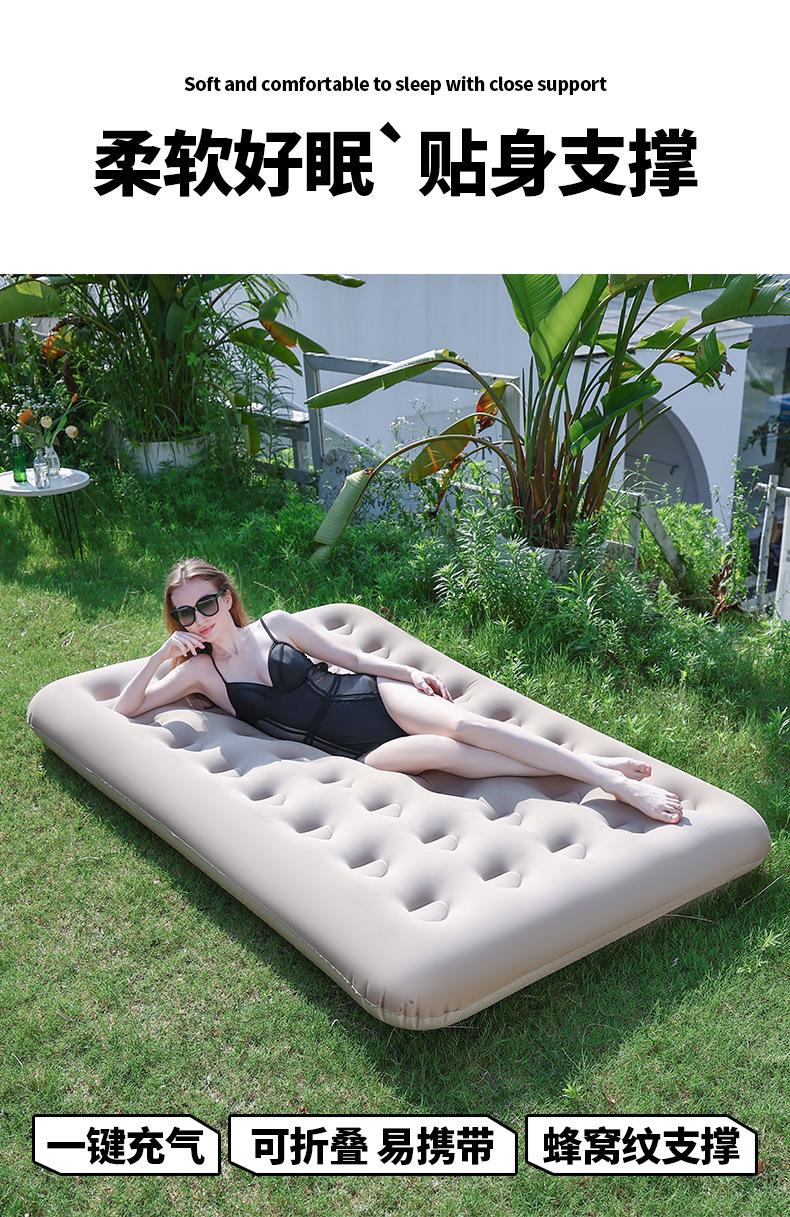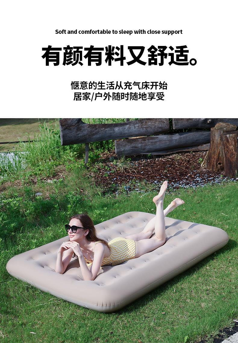 Colchón Inflable Individual, Doble, Tres Personas Engrosado Hogar Exterior Portátil Flocado Camping Ocio Colchón de Aire Cama Plegable