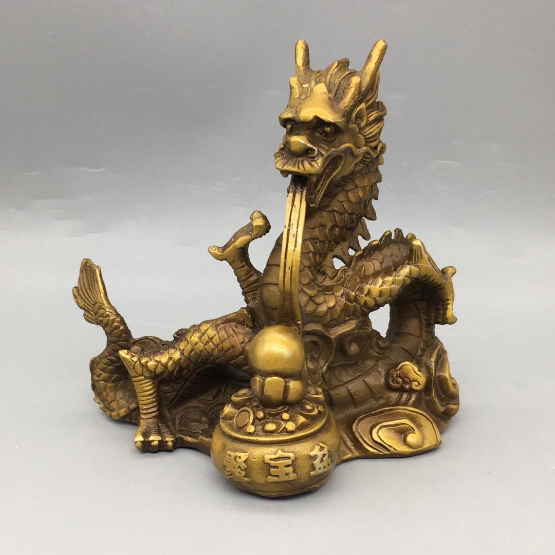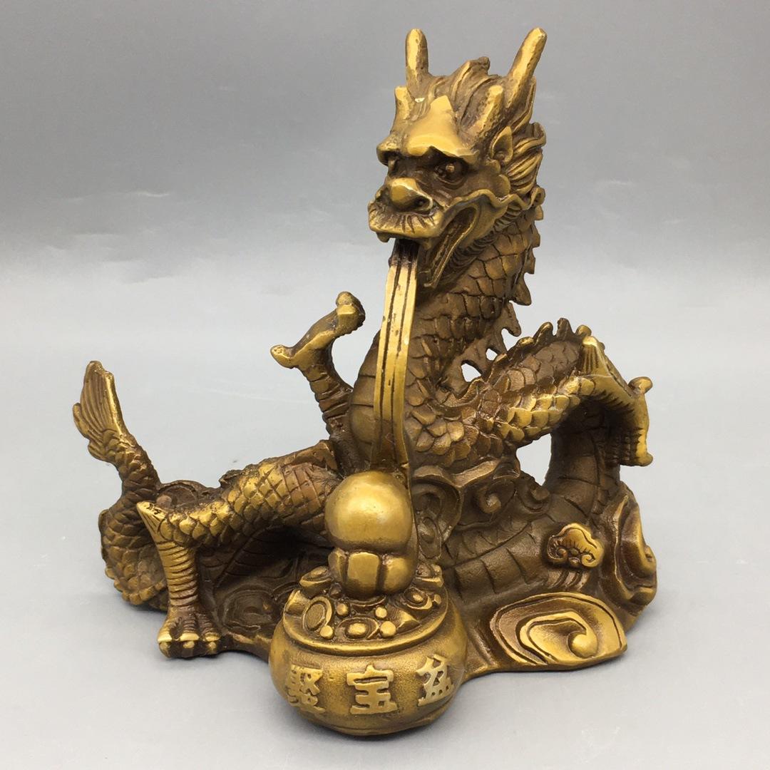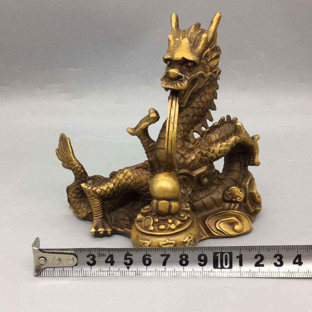 Colección Antigua Bronce Latón Dragón Abalorio Absorbiendo Decoración para Sala de Estar Hogar Latón Antiguo Dragón Cornucopia Decoración Artesanías