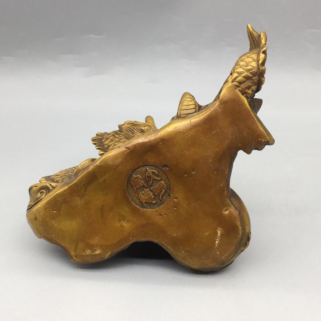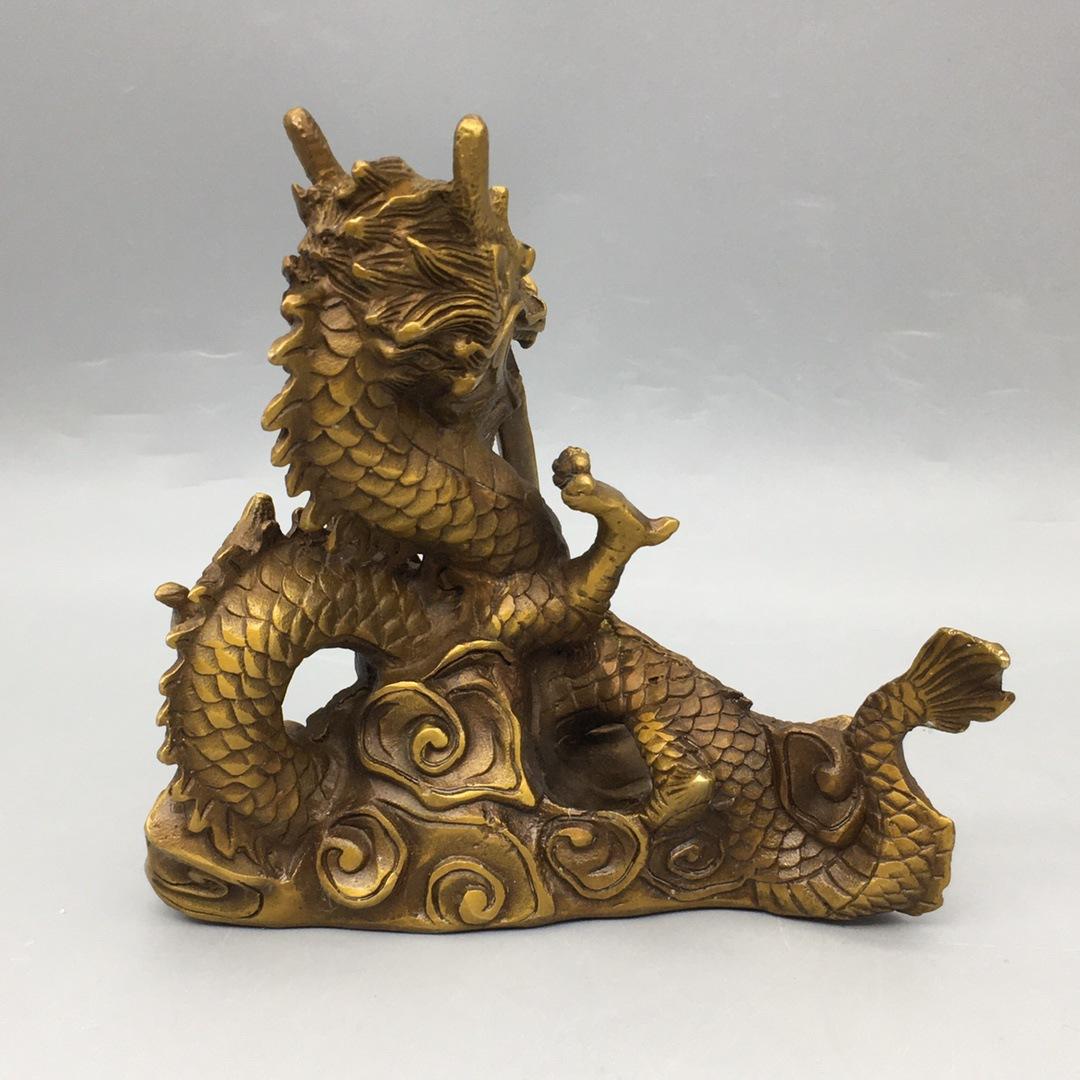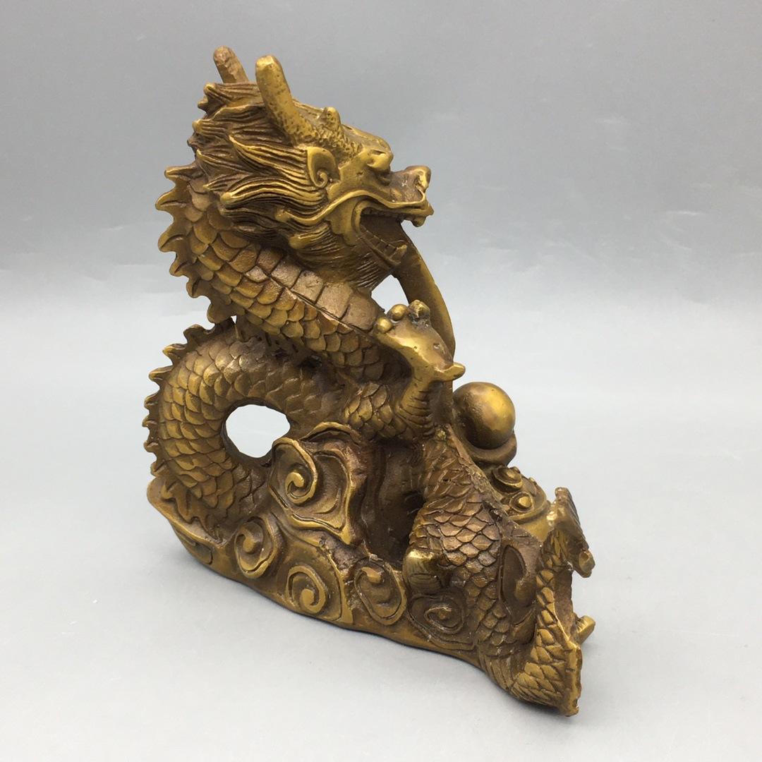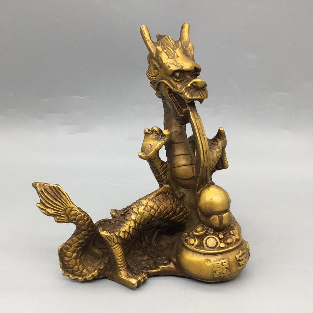 Colección Antigua Bronce Latón Dragón Abalorio Absorbiendo Decoración para Sala de Estar Hogar Latón Antiguo Dragón Cornucopia Decoración Artesanías