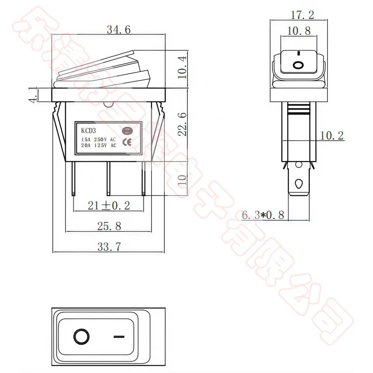 Interruptor Basculante Negro Impermeable 3 Pines 3 Posiciones KCD3 Negro Pieza Única Impermeable Interruptor Basculante de Tres Pines Tres Posiciones