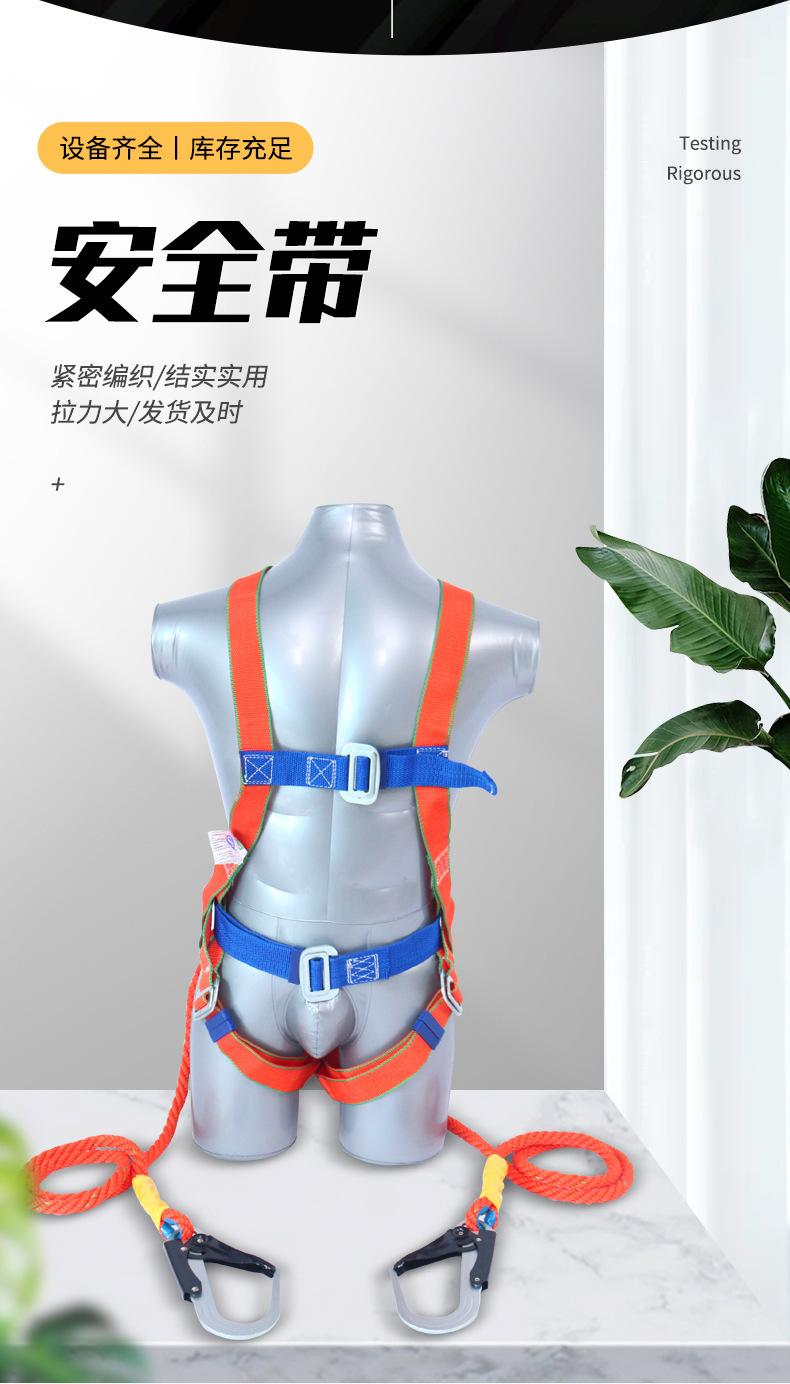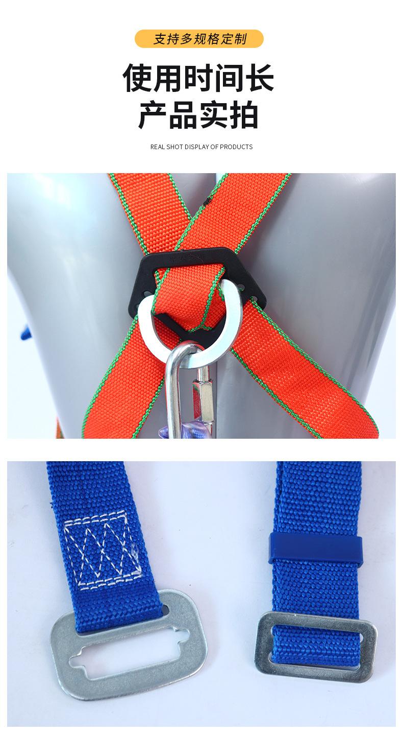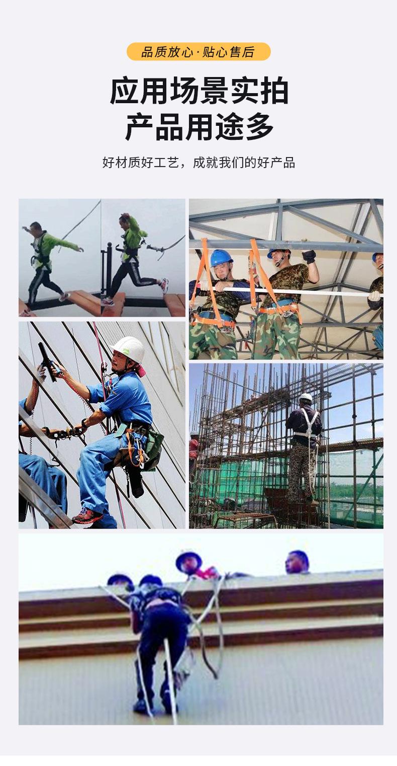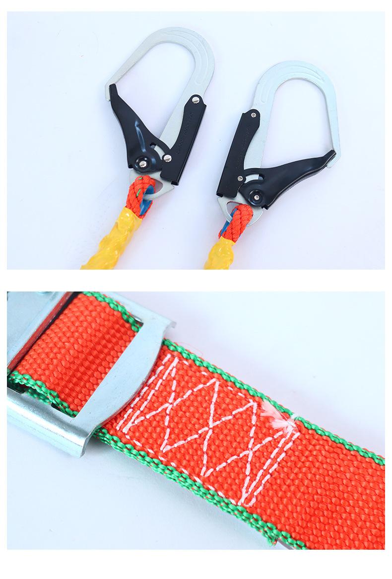Arnés de cuerpo completo, que le brinda soporte de seguridad para todo el cuerpo, ya no como el tipo de medio cuerpo que se desliza fácilmente: con unoPunto de conexión de suspensión con anillo en D, se puede conectar fácilmente a la cuerda de seguridad; utilizamos cinta de poliéster de alta resistencia de 45 mm de ancho, resistente al solMoler NAIResistente a la intemperie, y también de muy alta resistencia, la pequeña resistencia a la rotura de una sola cinta puede alcanzarAlrededor de 3 toneladas.