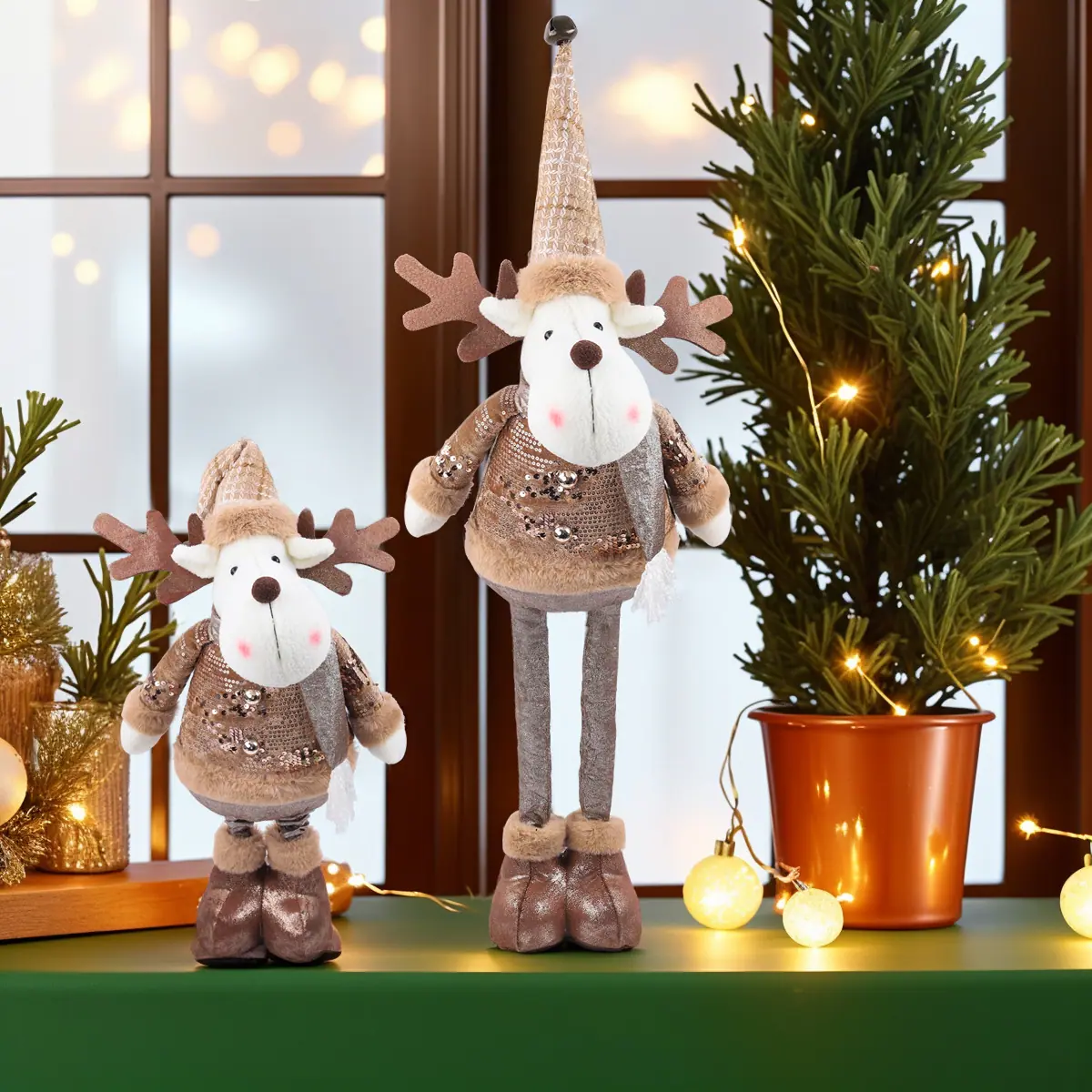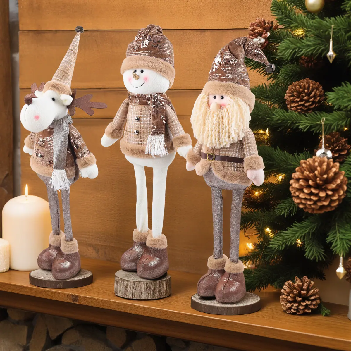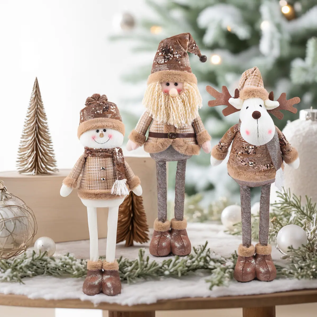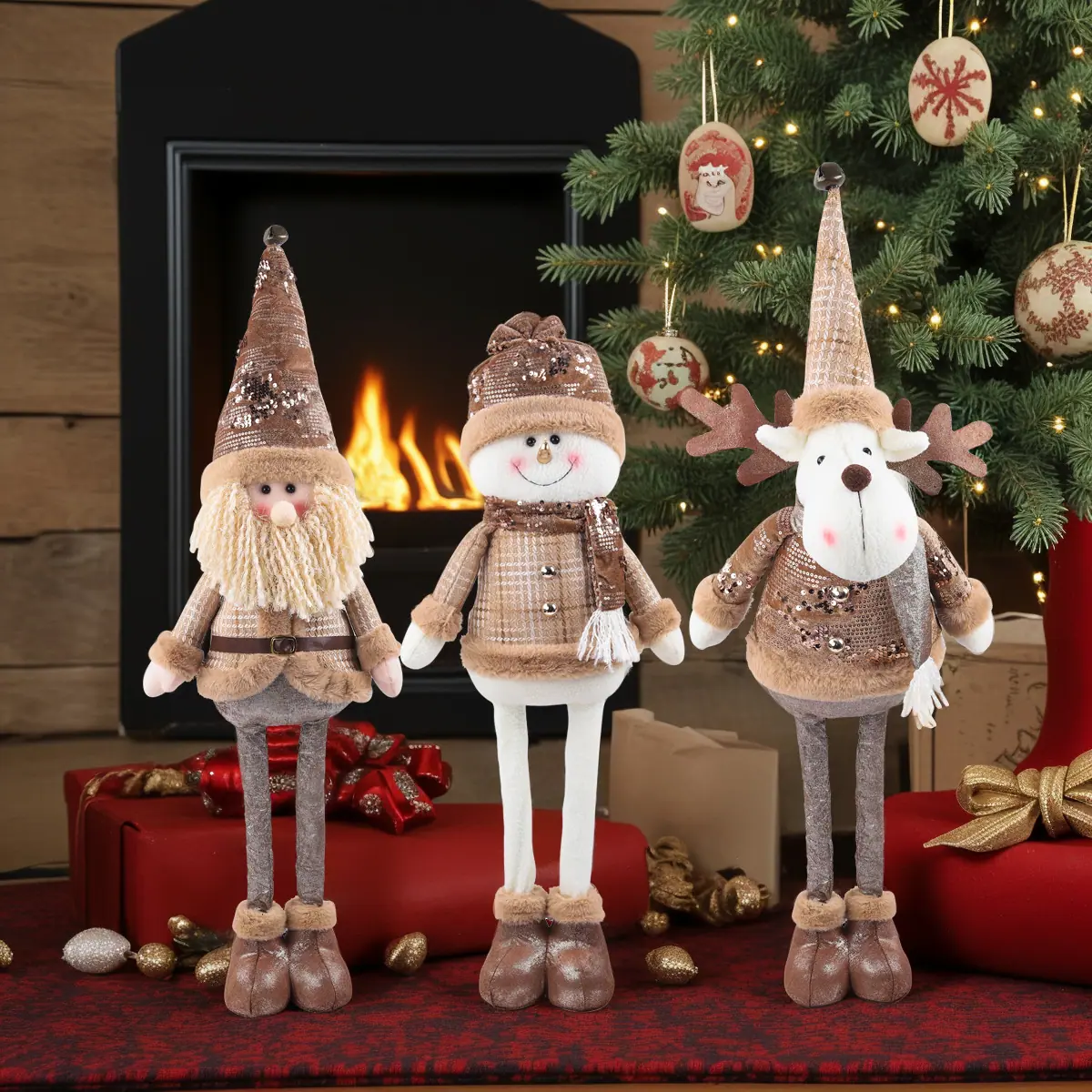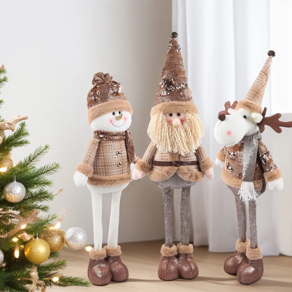 Adornos de Decoración Navideña Transfronteriza Nuevo Papá Noel Muñeco de Nieve Reno Estilo Patilargo Adornos de Peluche Decoraciones Navideñas