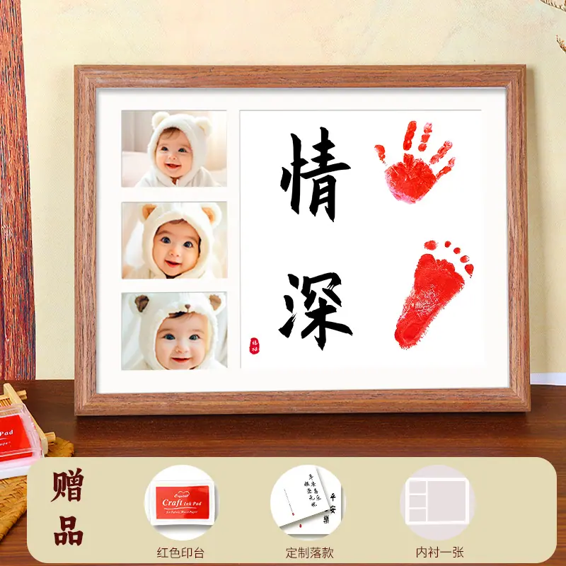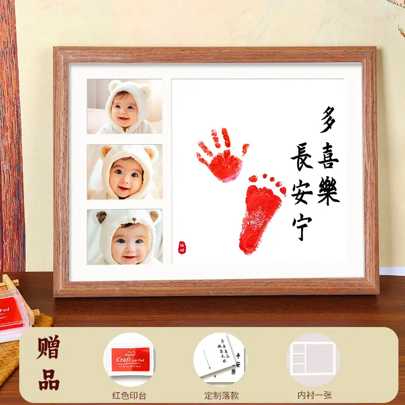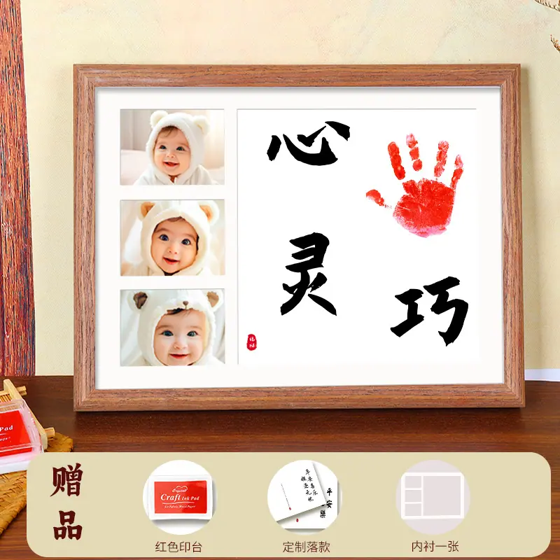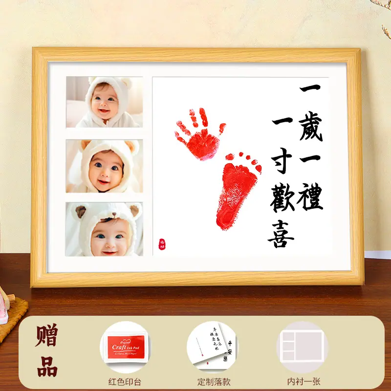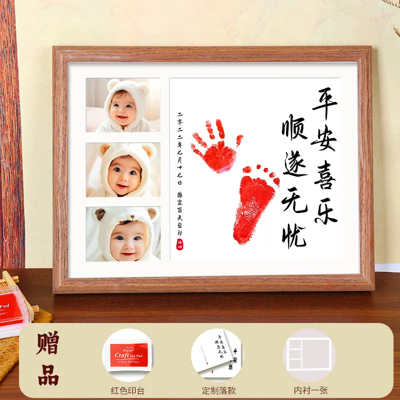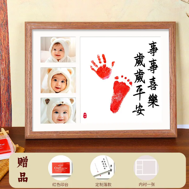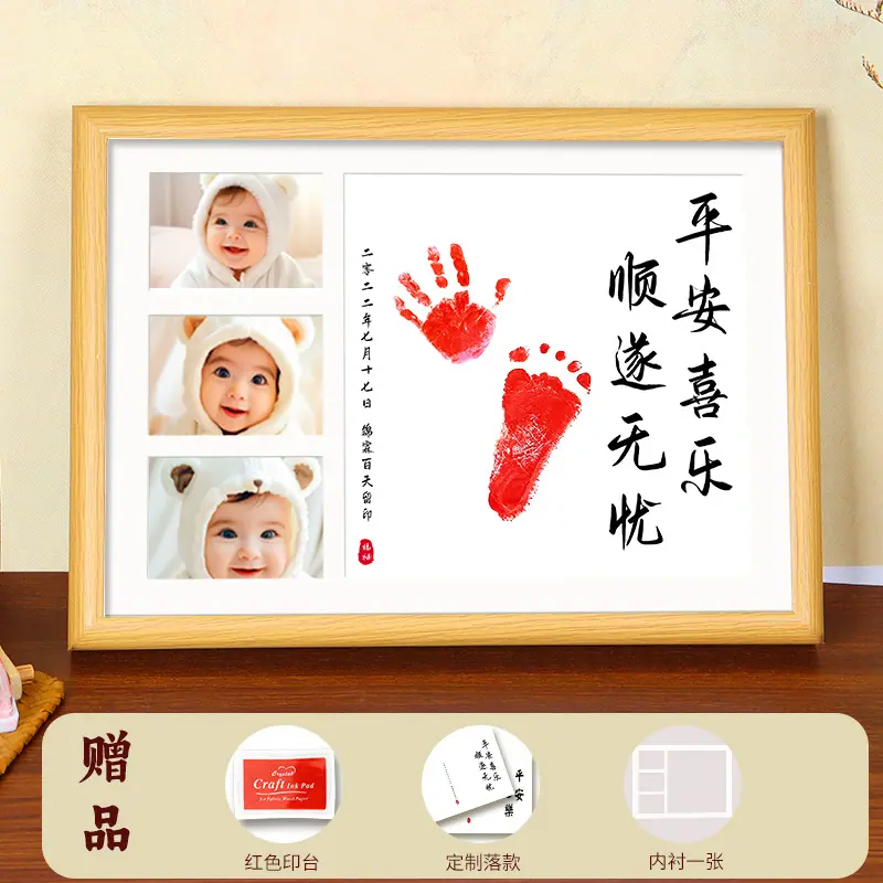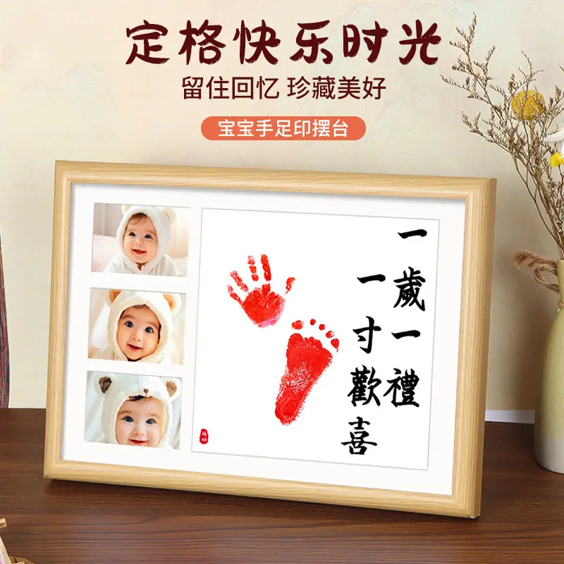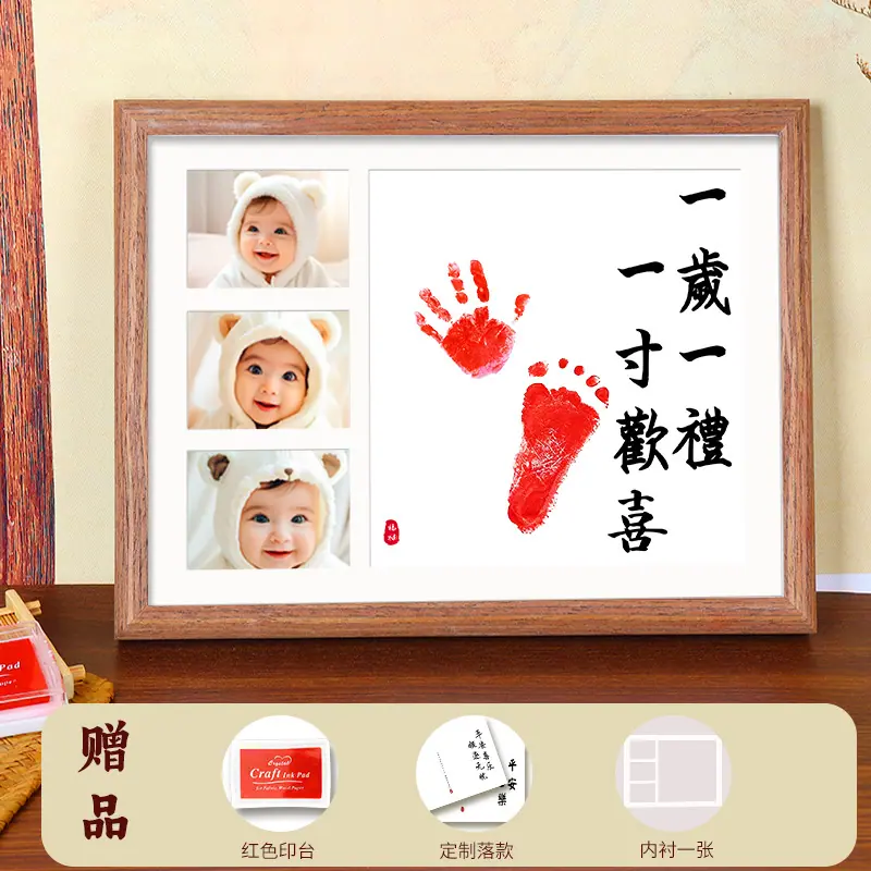 Regalo Primer Cumpleaños del Bebé Huella de Mano y Pie Foto Marco Conmemorativo Suministros Luna Llena Cien Días Nacimiento del Bebé Huella de Mano y Pie Hecho a Mano