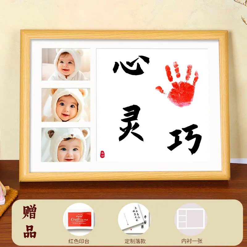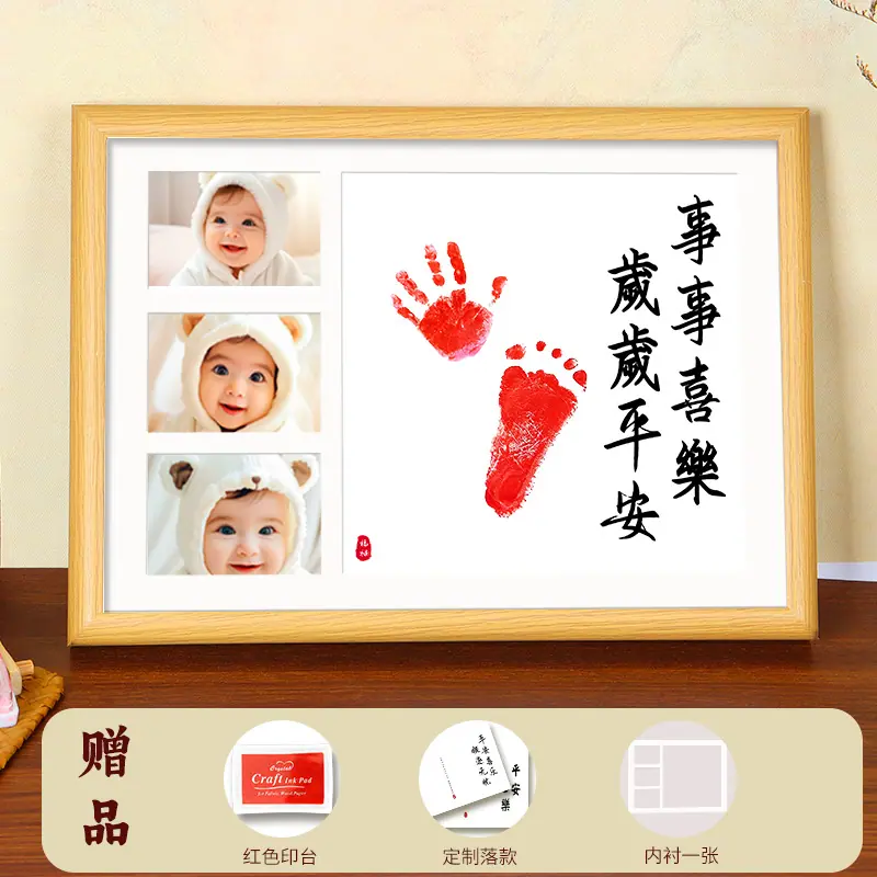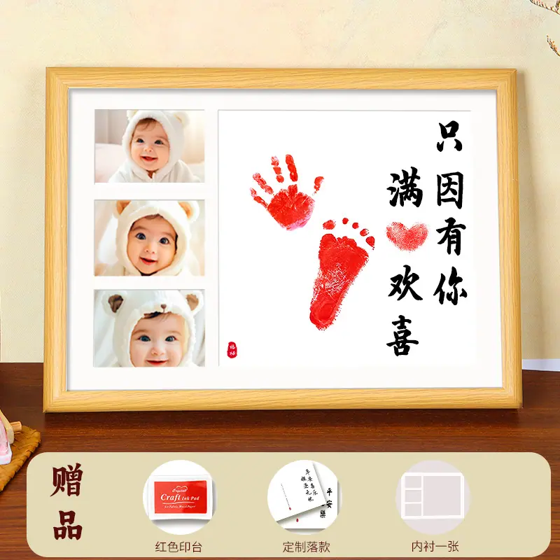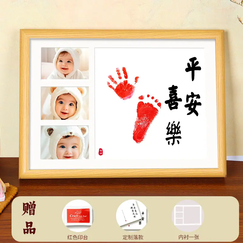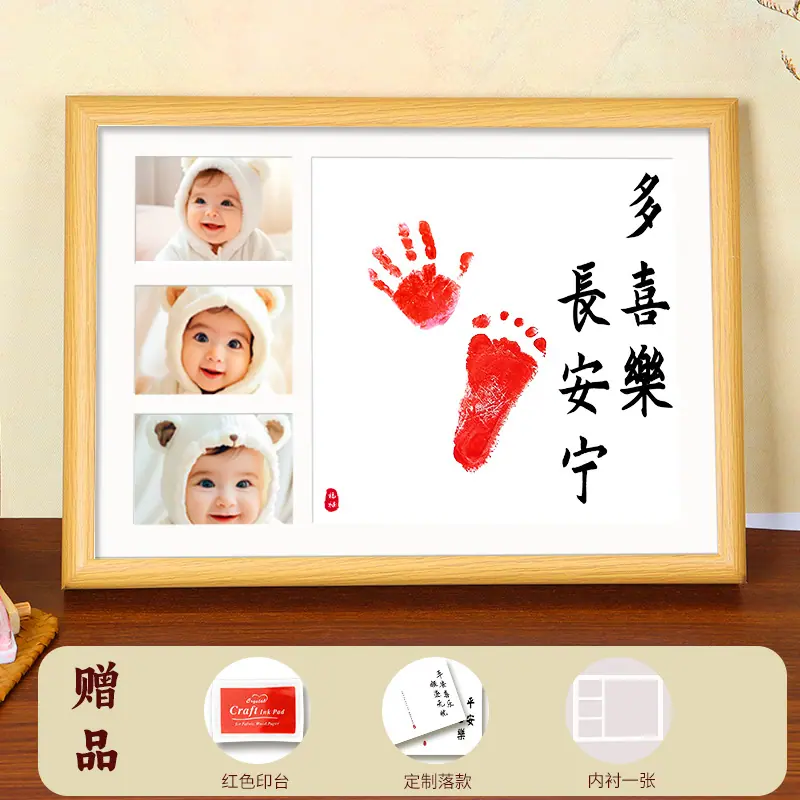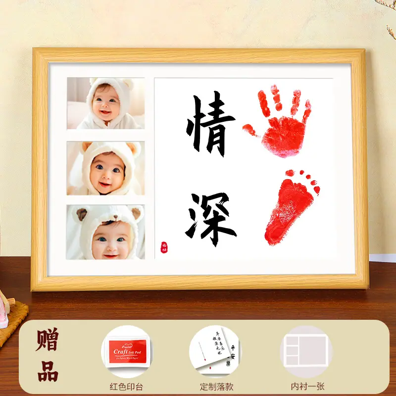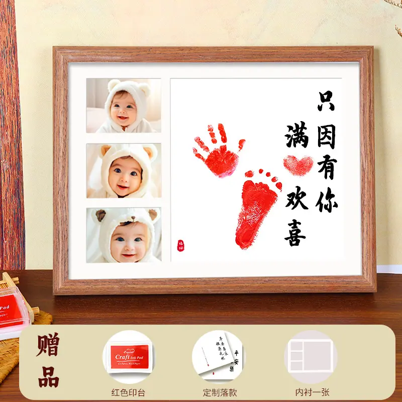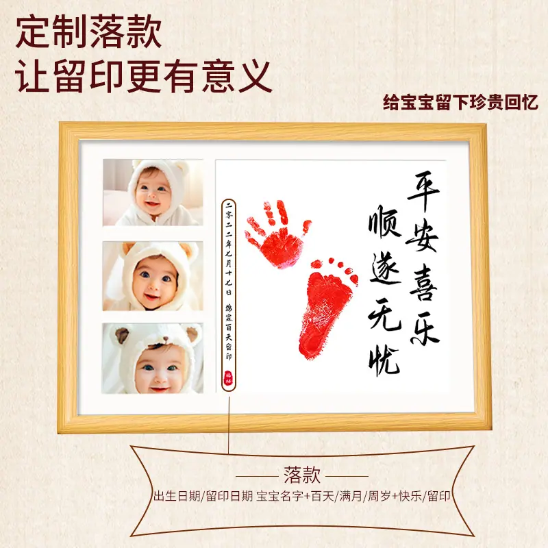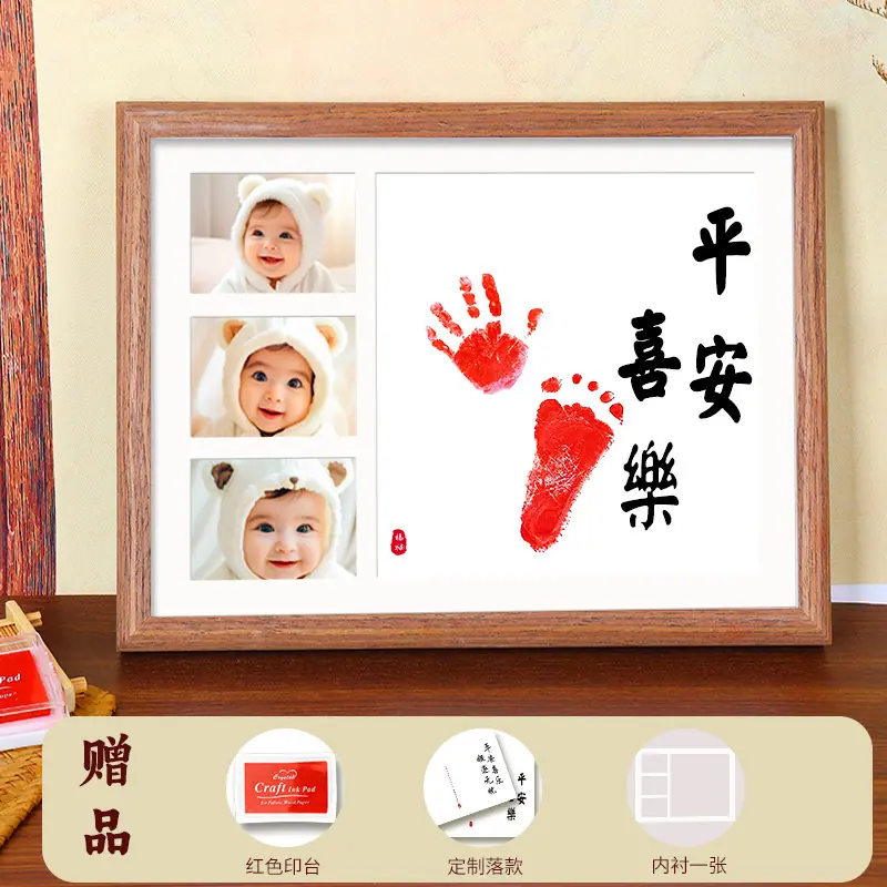 Regalo Primer Cumpleaños del Bebé Huella de Mano y Pie Foto Marco Conmemorativo Suministros Luna Llena Cien Días Nacimiento del Bebé Huella de Mano y Pie Hecho a Mano