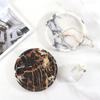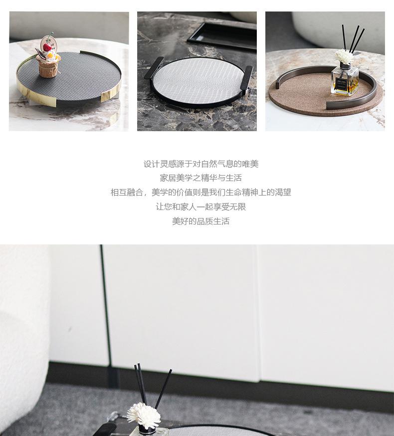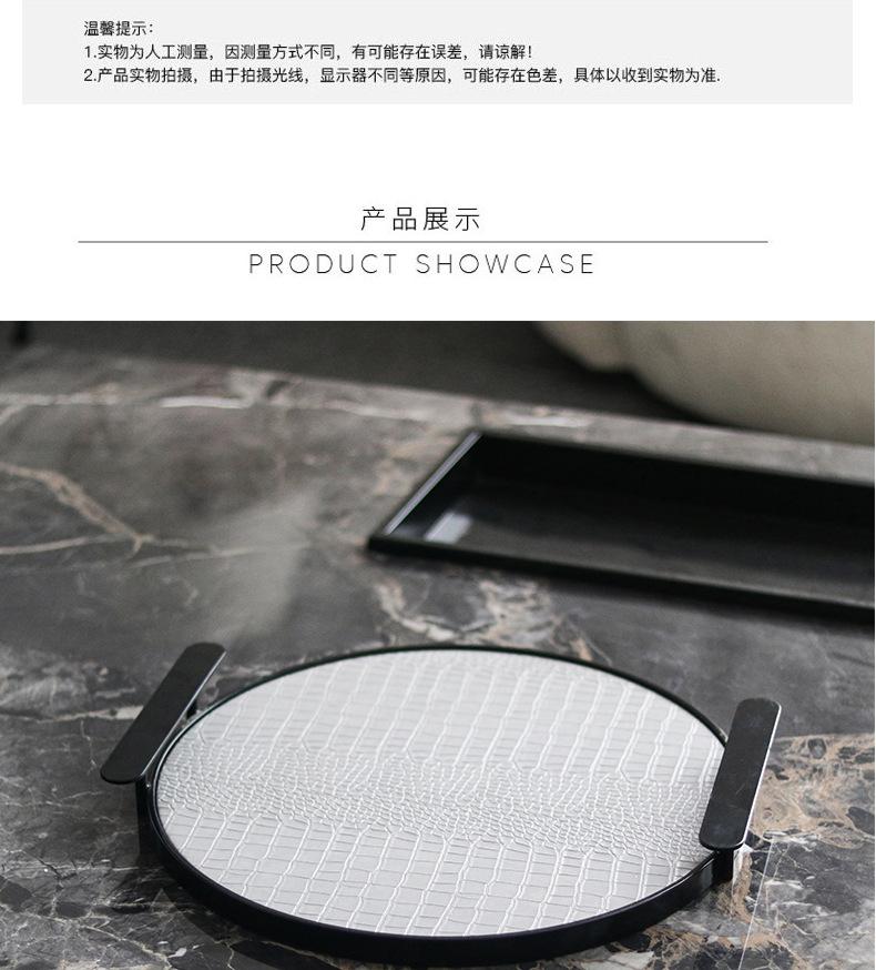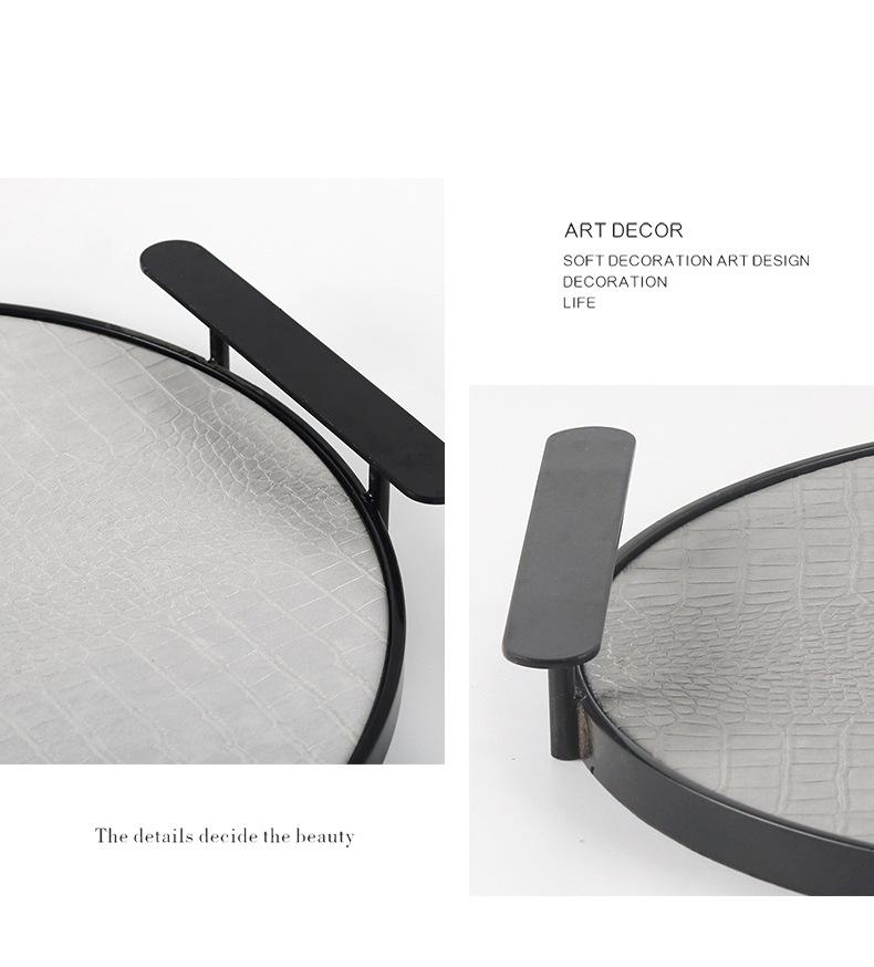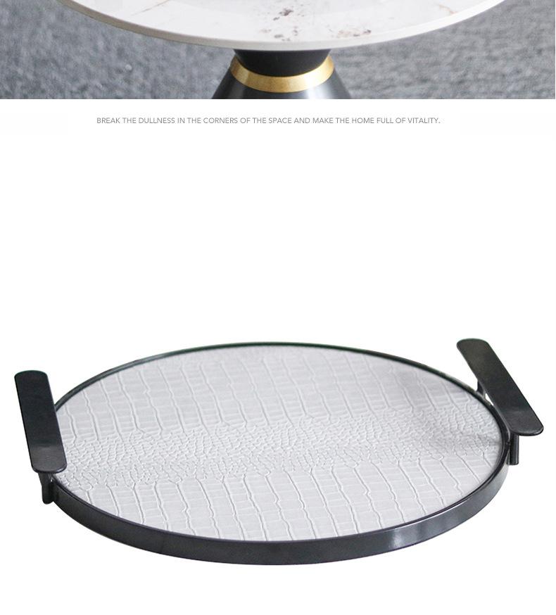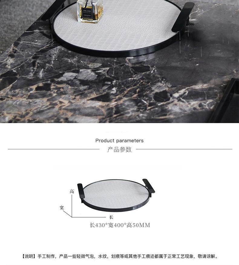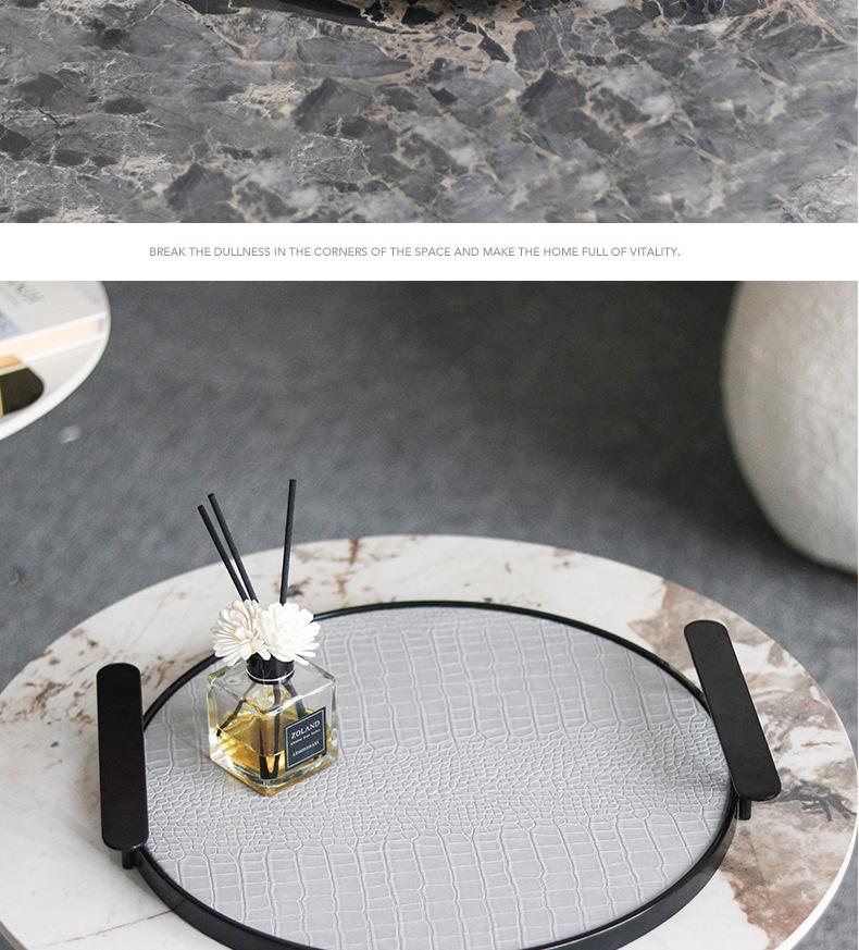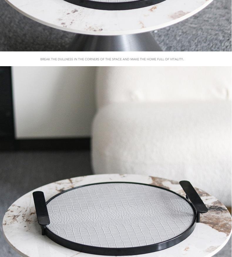 Bandeja Redonda de Cuero de Lujo Ligero Moderno con Asa Geométrica para Almacenamiento Adornos Sala Modelo Escritorio Bandeja de Aromaterapia Decoraciones
