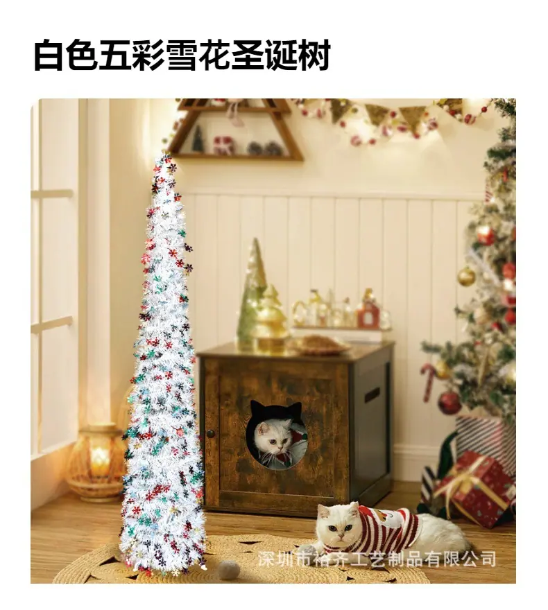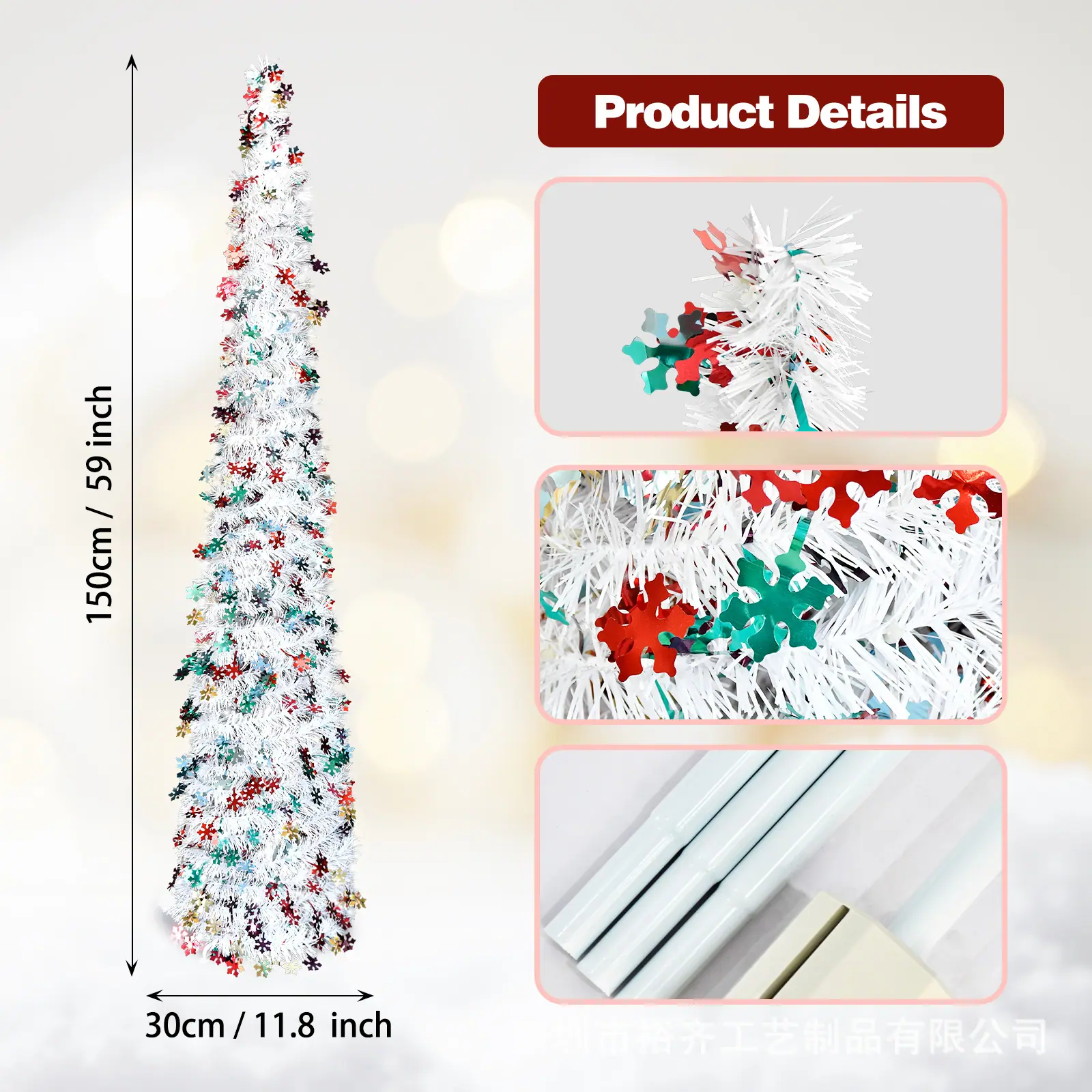 Árbol de Navidad plegable transfronterizo blanco colorido copo de nieve árbol de Navidad para interior y exterior adornos de ambiente festivo navideño árbol