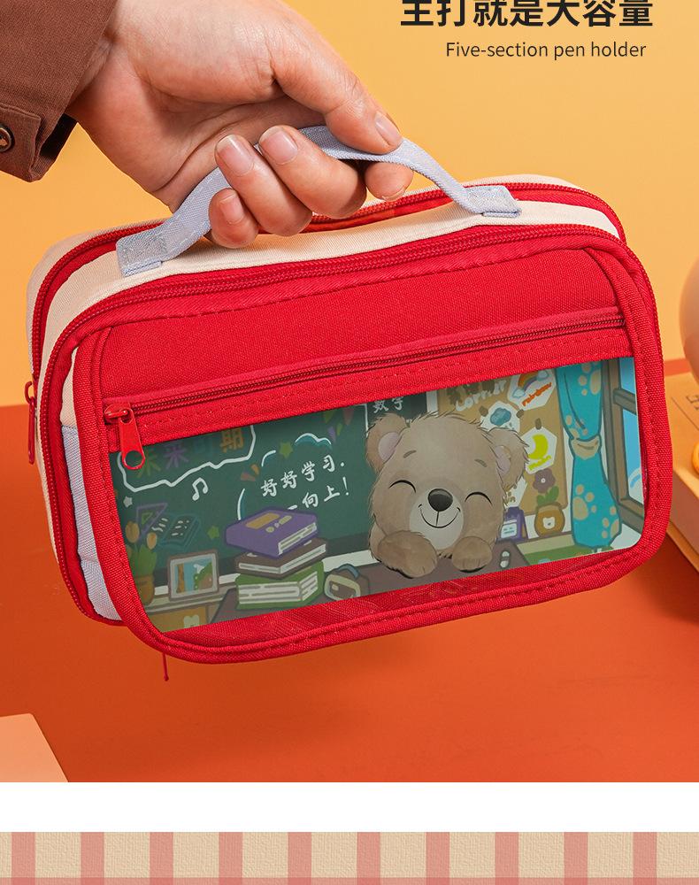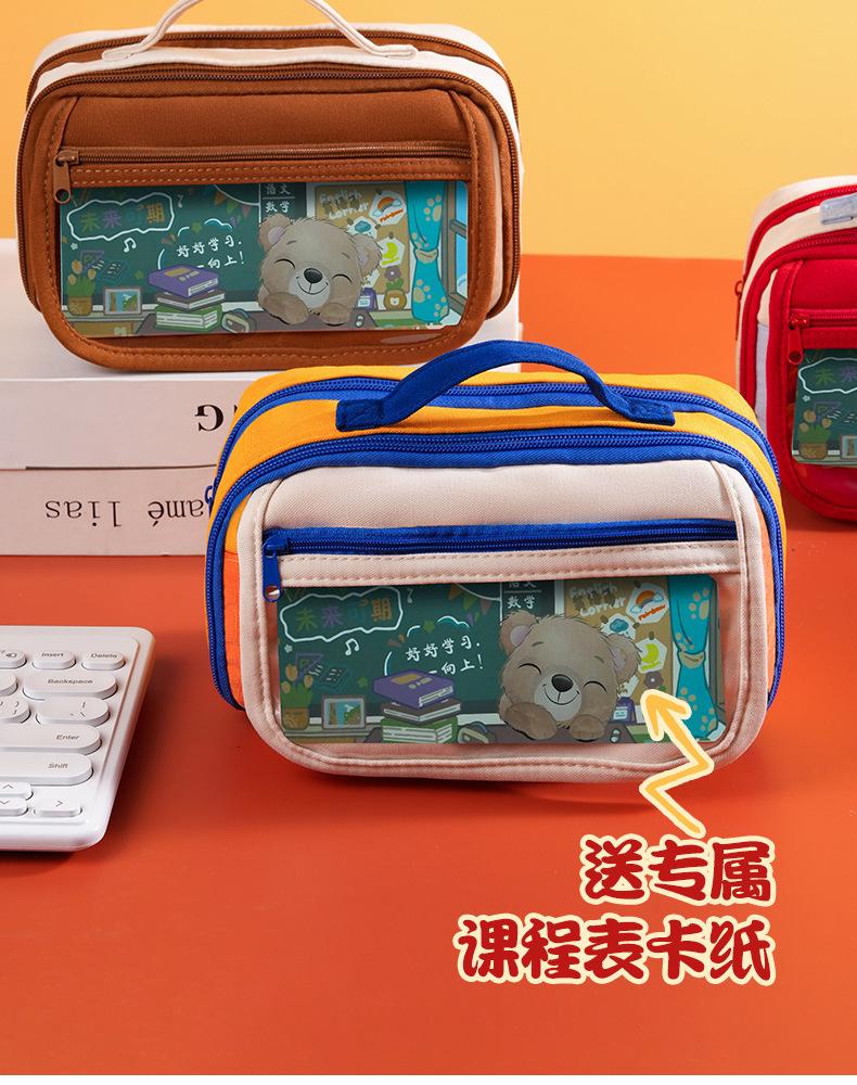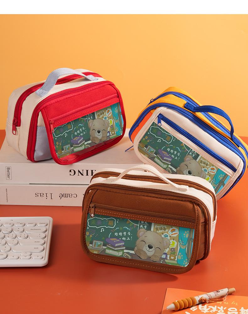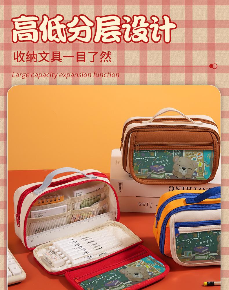Estuche de Lápices Lindo de Gran Capacidad Multicapa para Estudiante Portátil con Doble Cremallera de Mano Bolsa de Papelería Estilo Clásico Bolsa de Lápices Multifuncional