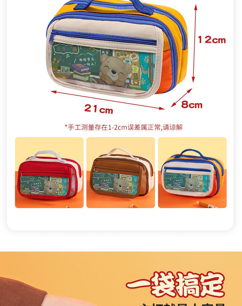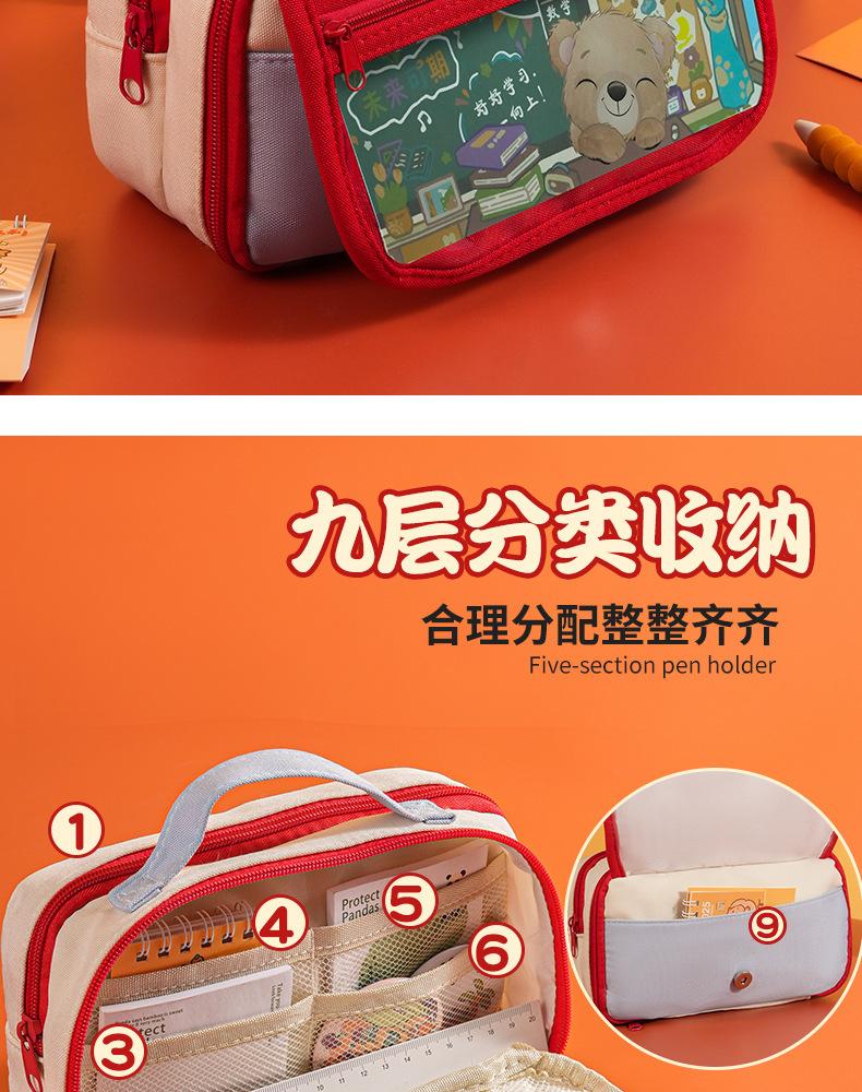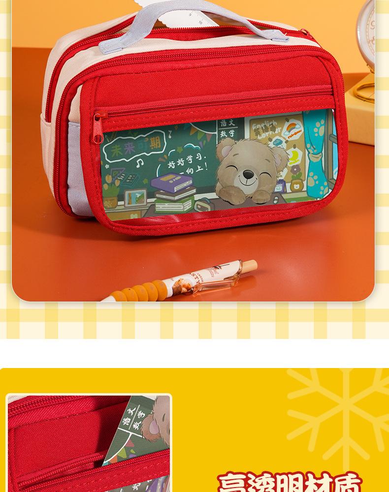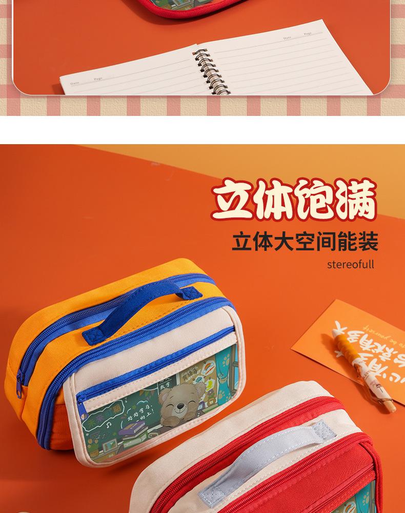 Estuche de Lápices Lindo de Gran Capacidad Multicapa para Estudiante Portátil con Doble Cremallera de Mano Bolsa de Papelería Estilo Clásico Bolsa de Lápices Multifuncional