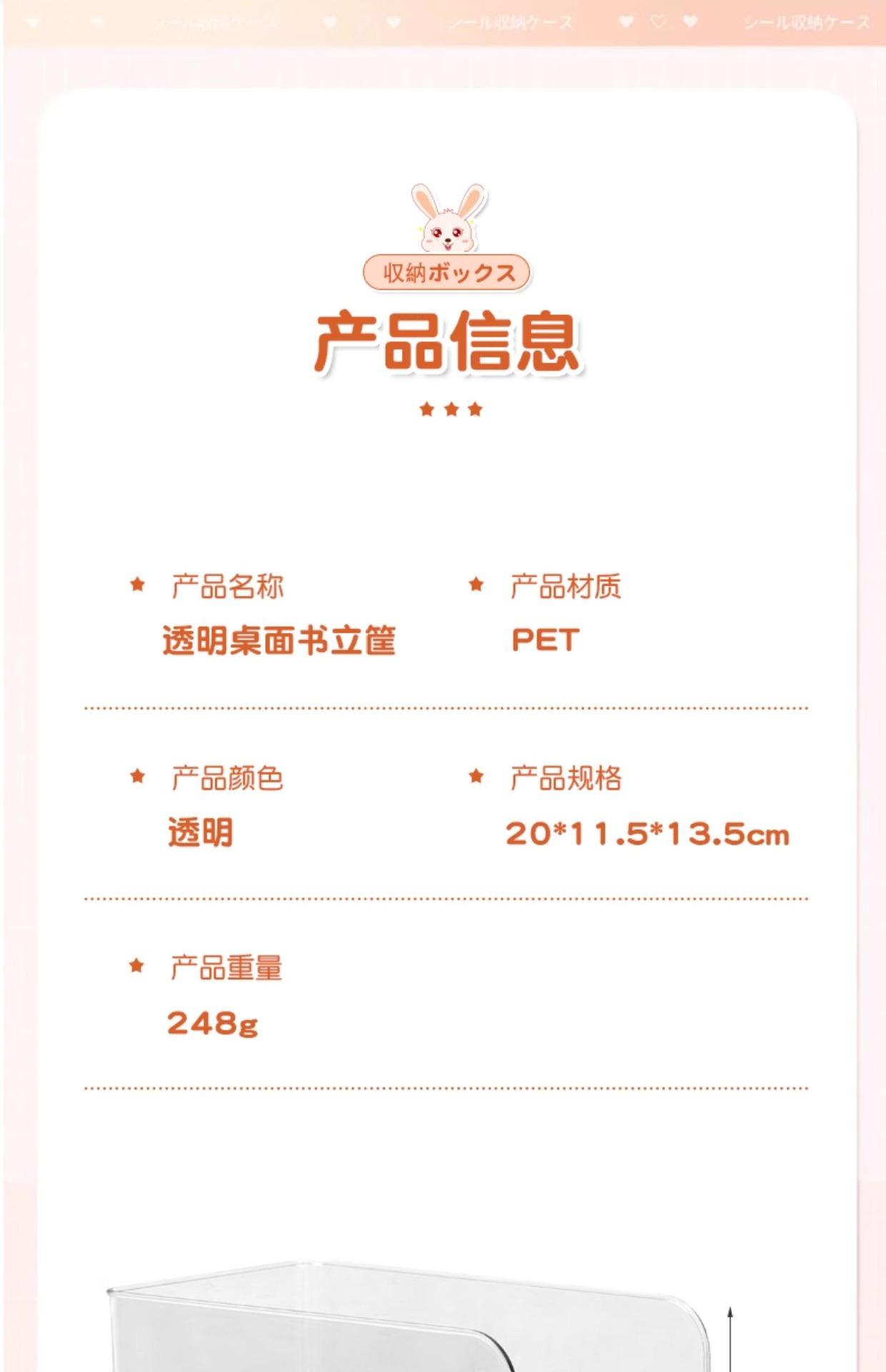 Transparent 1-piece U-shaped acrylic bookend, 【Single Compartment】Acrylic Pen Holder