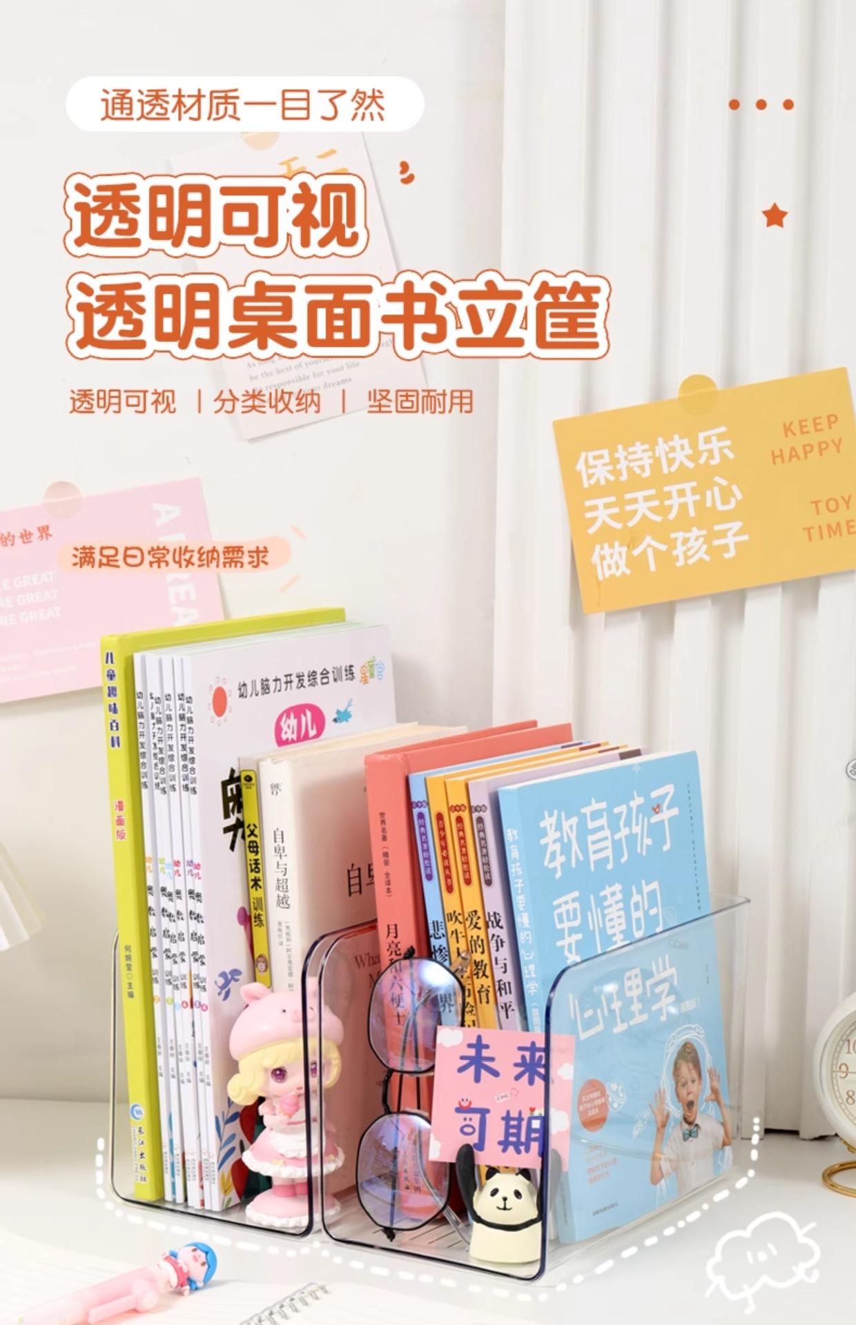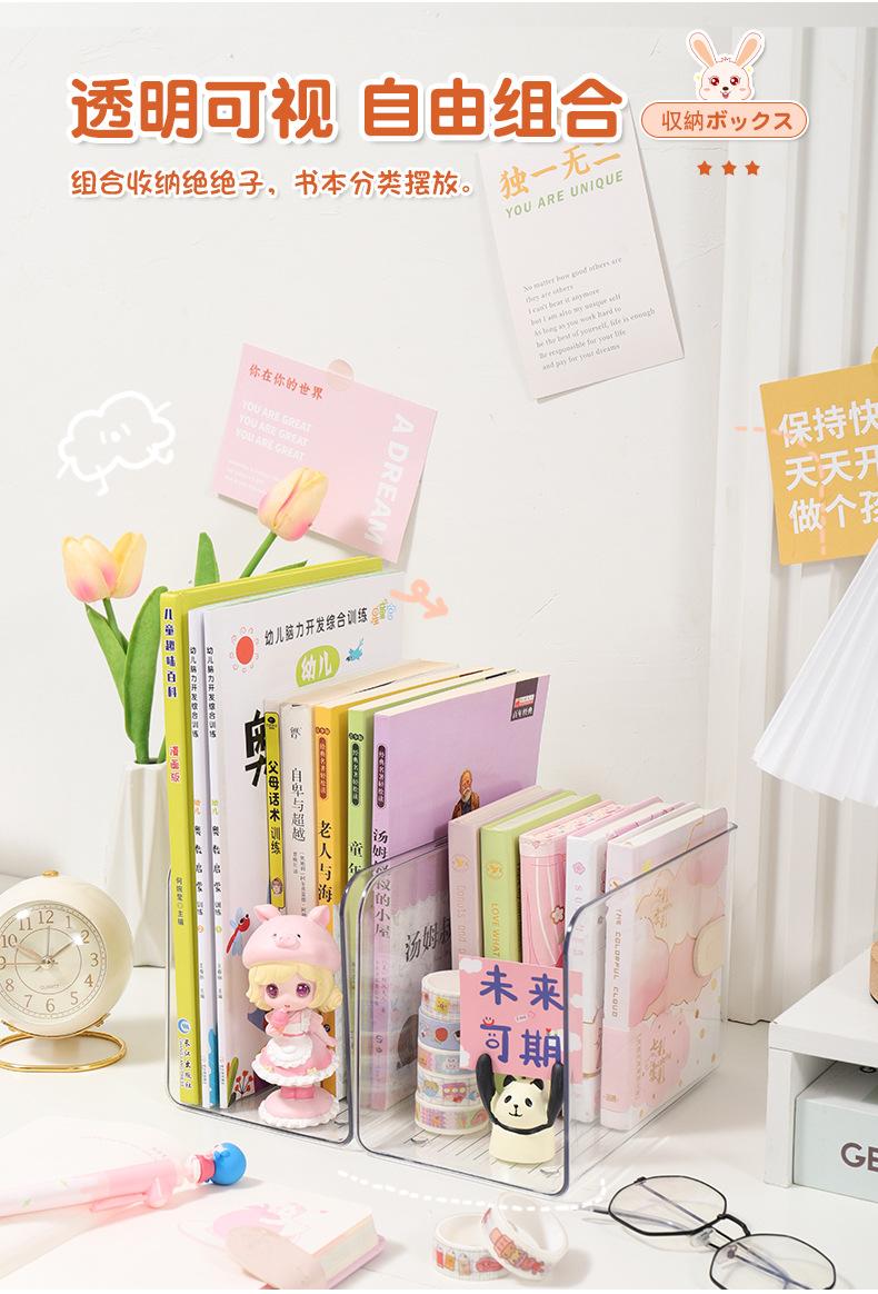 Sujetalibros Soporte para Archivos Acrílico Escritorio Transparente Estante de Libros Soporte Libro Fijo Clip para Libros Caja de Almacenamiento de Escritorio Estante