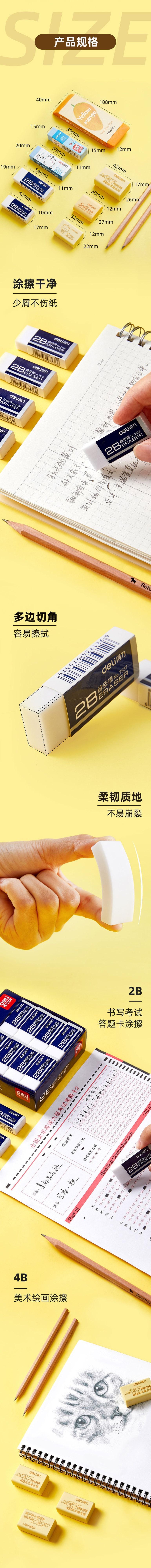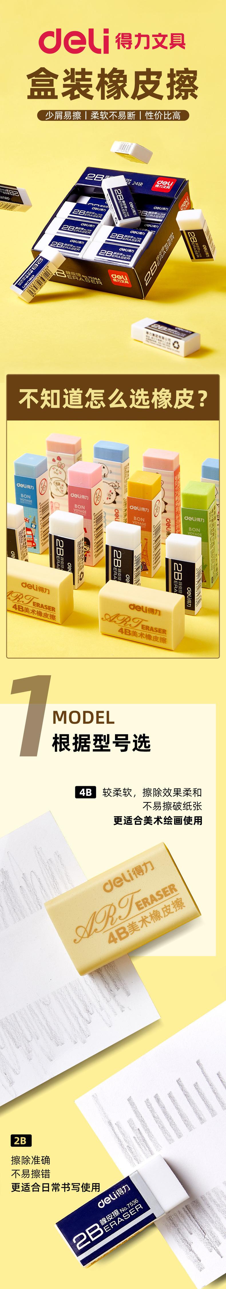 Borrador de Papelería Deli para Estudiantes y Niños, Borrador 2B, Borrador de Arte para Dibujo y Examen 4B, Borrador de Lápiz, Venta al por Mayor Caja Completa