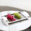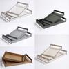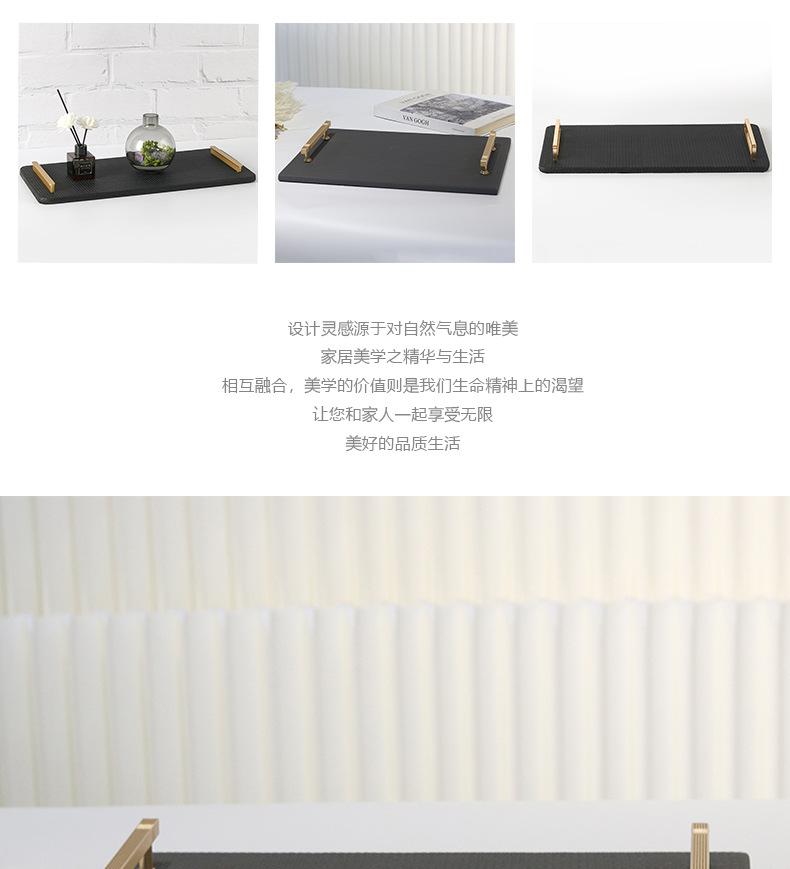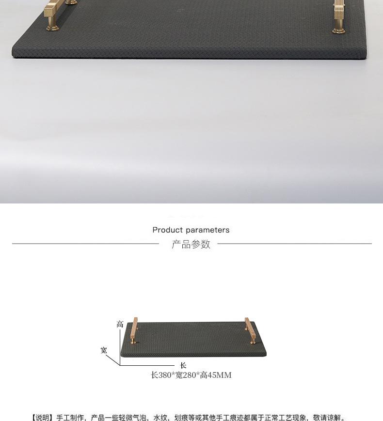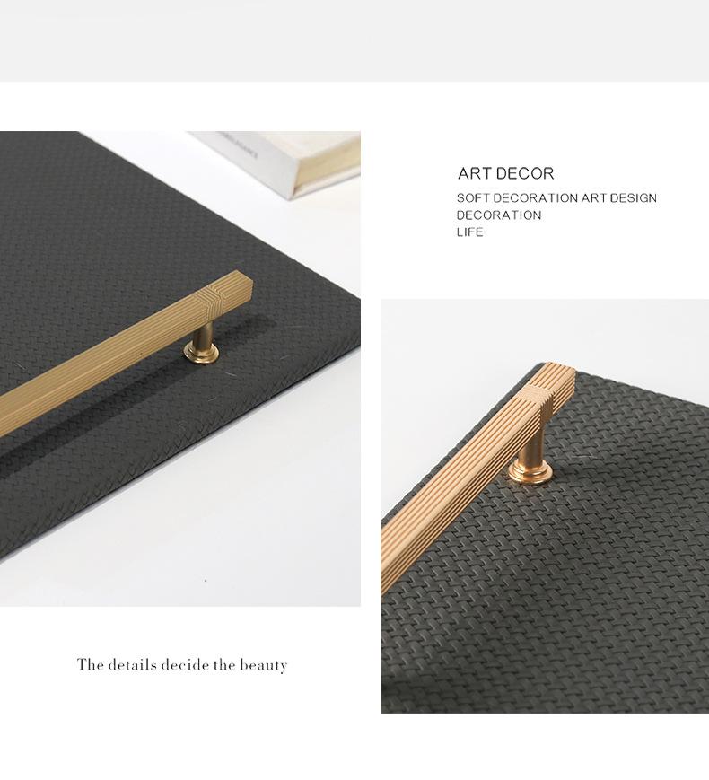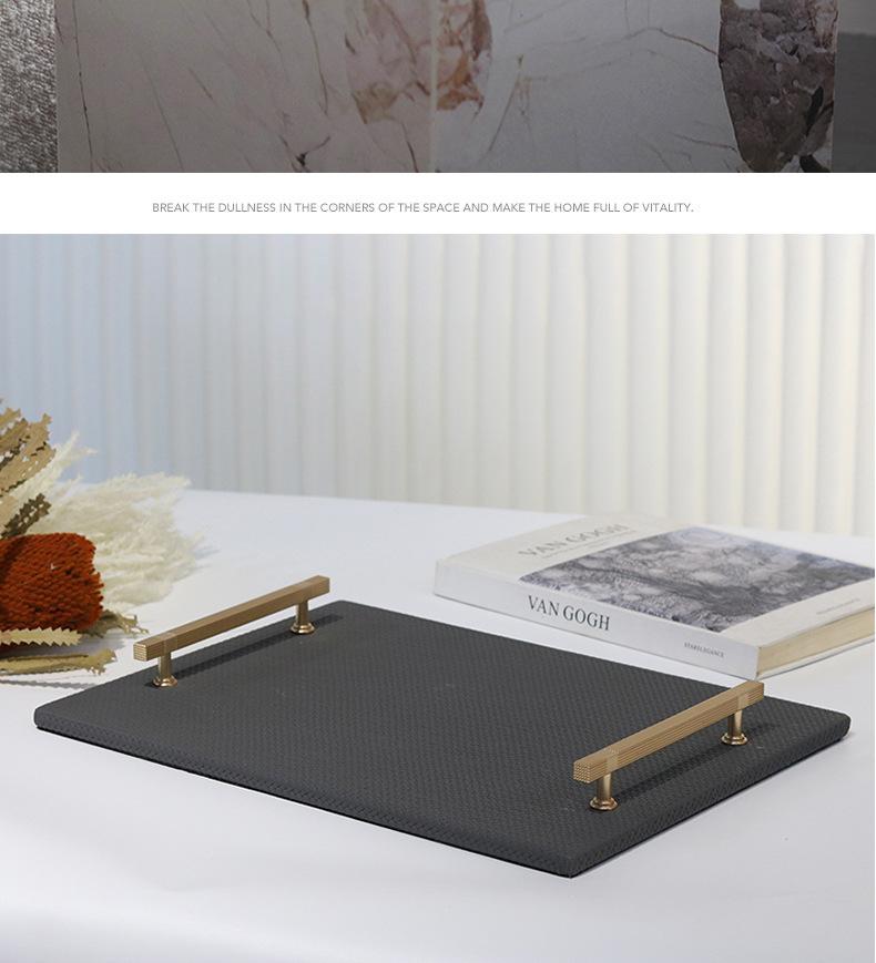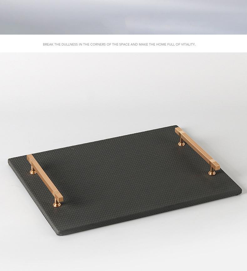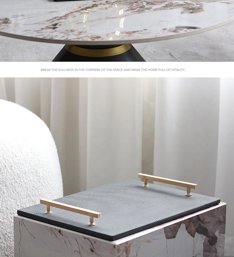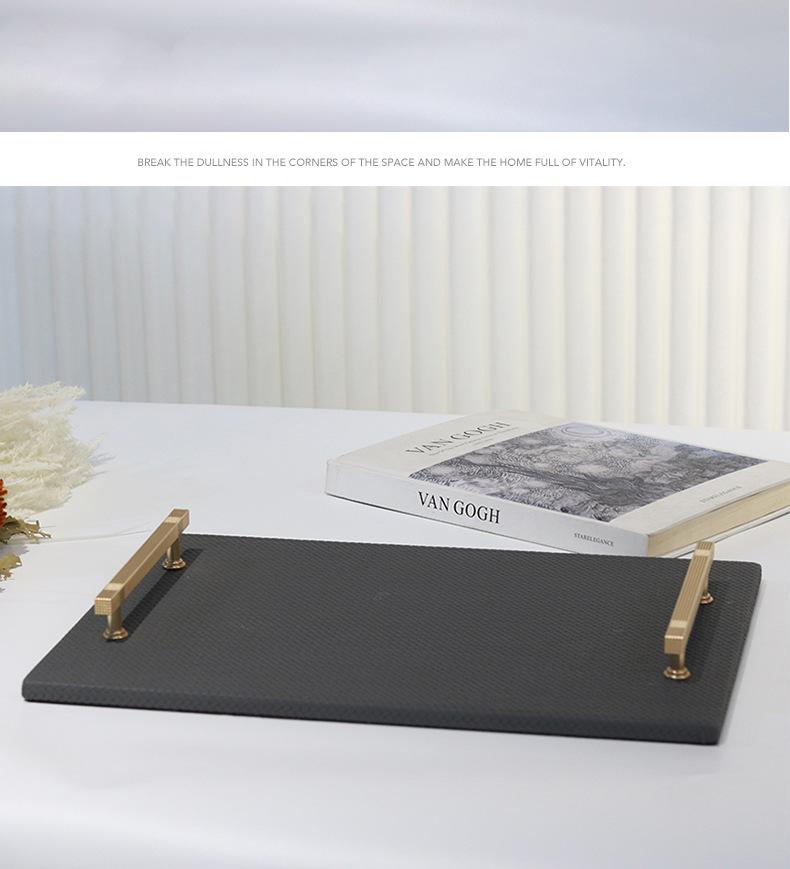 Bandeja de Cuero con Textura Tejida Minimalista Moderna Bandeja de Almacenamiento de Metal de Lujo Ligero Decoraciones Adornos para Sala de Estar Dormitorio de Habitación Modelo