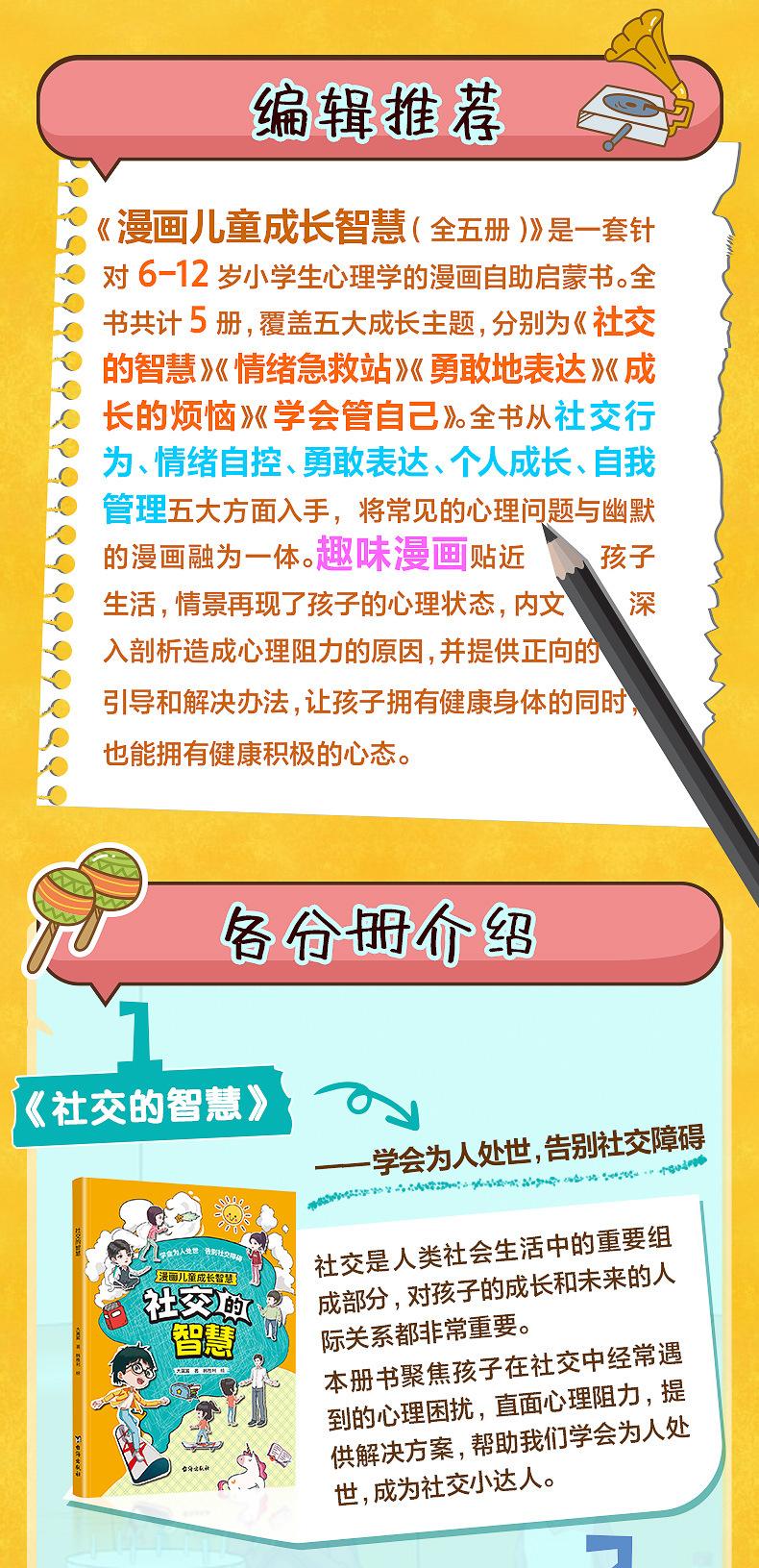 Un conjunto completo de cinco volúmenes de Sabiduría para el Crecimiento de los Niños, Sabiduría Social y Dolores de Crecimiento, un libro de iluminación para niños de 4 a 12 años.