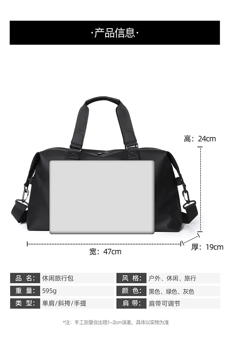 Nueva bolsa de equipaje transfronteriza, bolsa deportiva de gran capacidad, bolso de mano para exteriores, bolsa de equipaje de hombro con textura de color sólido