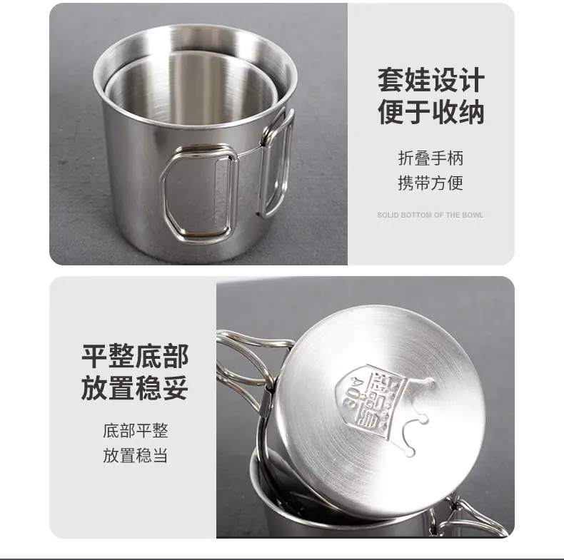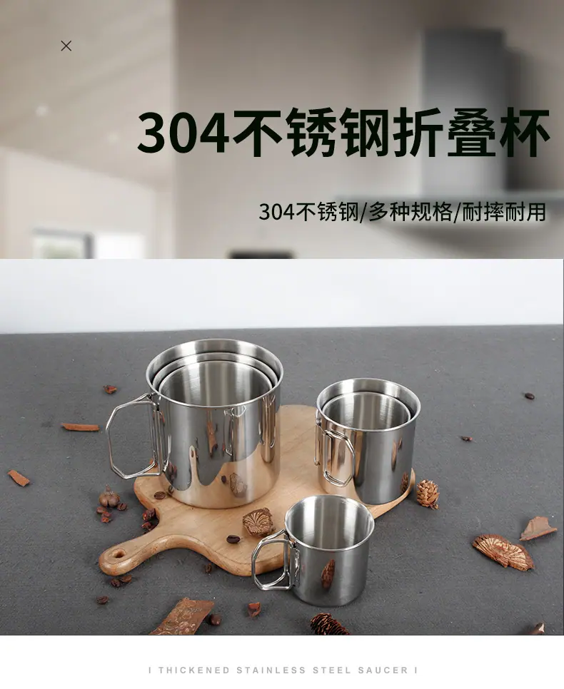 Taza plegable de acero inoxidable 304 para exteriores, para acampar, picnic, montañismo, almacenamiento portátil, taza de té