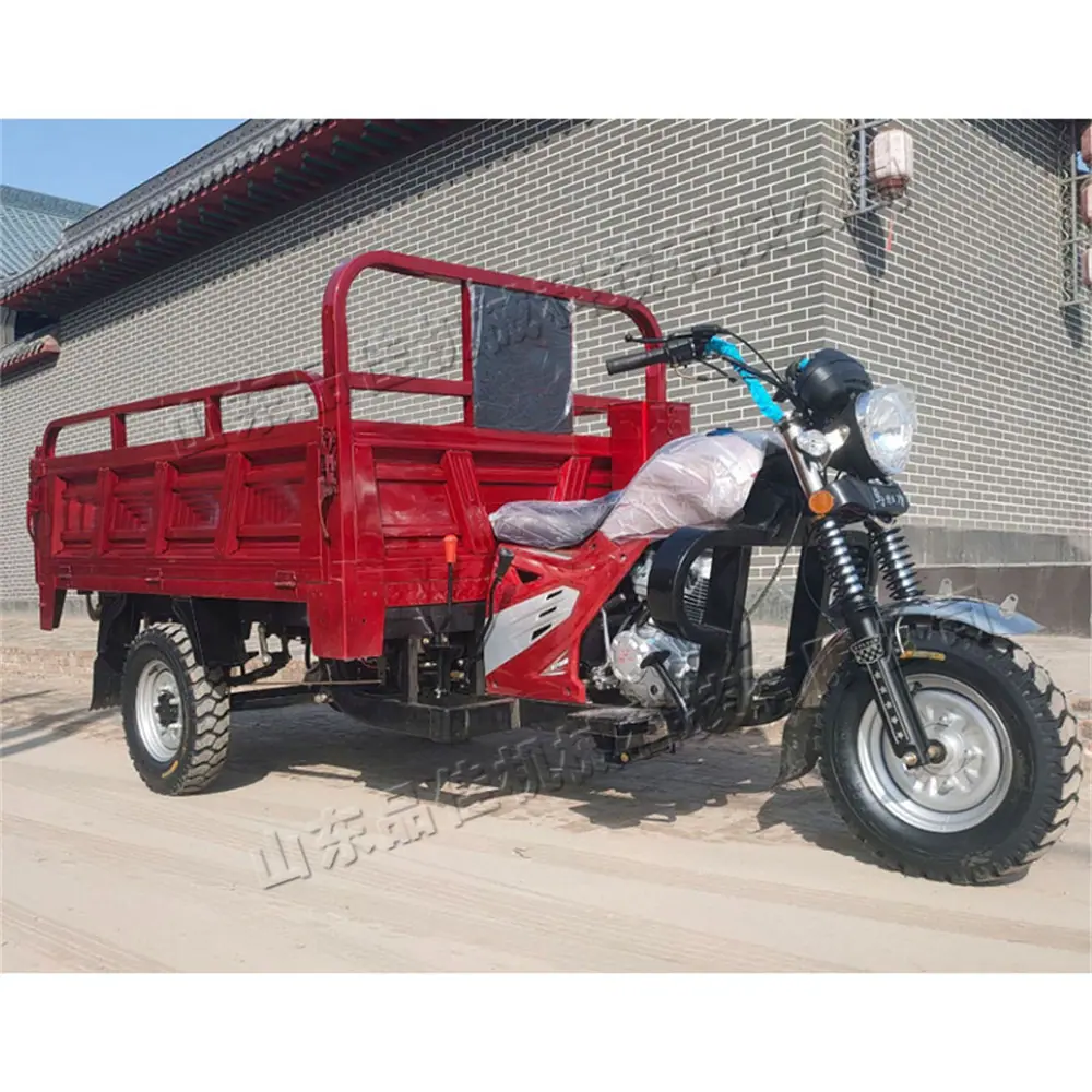 Una motocicleta es un vehículo de tres ruedas impulsado por un motor de gasolina y con la rueda delantera dirigida por un manillar. Es un vehículo de ruedas conducido o remolcado por una unidad de potencia y circula por la carretera para pasajeros o para transportar mercancías. La velocidad máxima es de 60 km/h. El triciclo de motocicleta es ligero y flexible, y se utiliza para diversos transportes de grano y hormigón. Es conveniente, rápido y ahorra mano de obra.