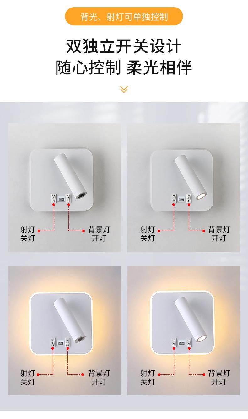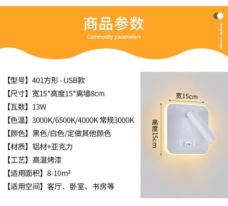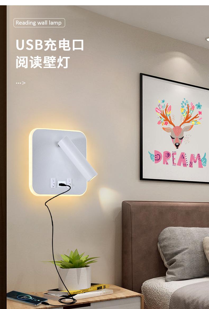Nuevo transfronterizo con lámpara de pared USB dormitorio estudio lámpara de pared led lámpara de sala de estar simple lámpara de lectura creativa de cabecera de hotel