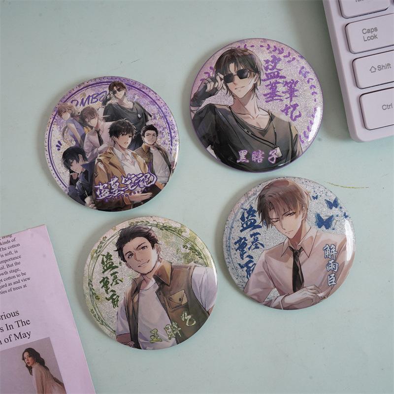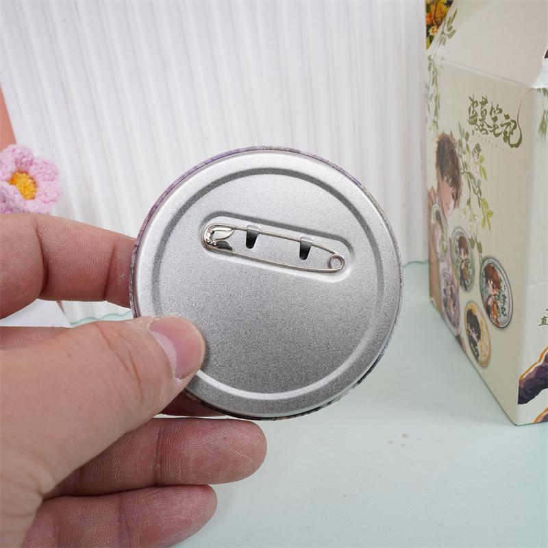 Club de lectura notas de robo de tumbas insignia de corteza de cebolla plateada hojalata 75 mm venta al por mayor ciego dibujos animados animación estrella secundaria