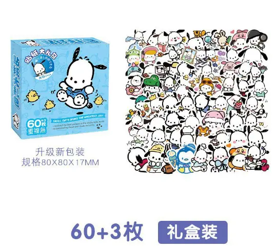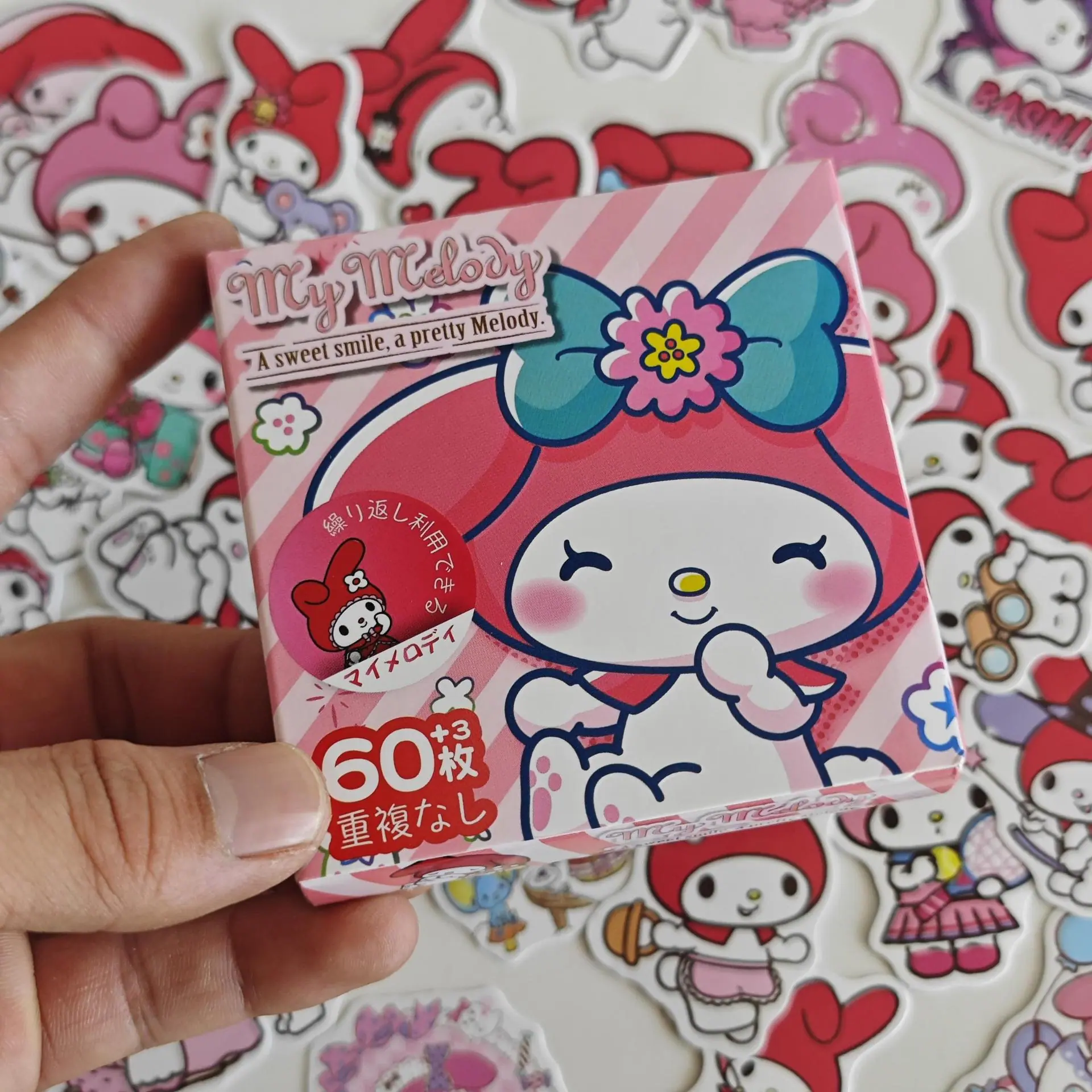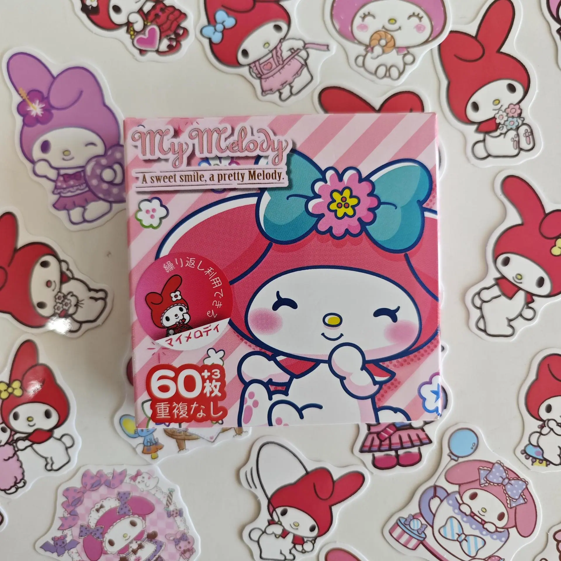 Caja de Regalo de Stickers de Melody Nueva 60+3 Material DIY No Repetido Caja de Regalo de Stickers de Pvc
