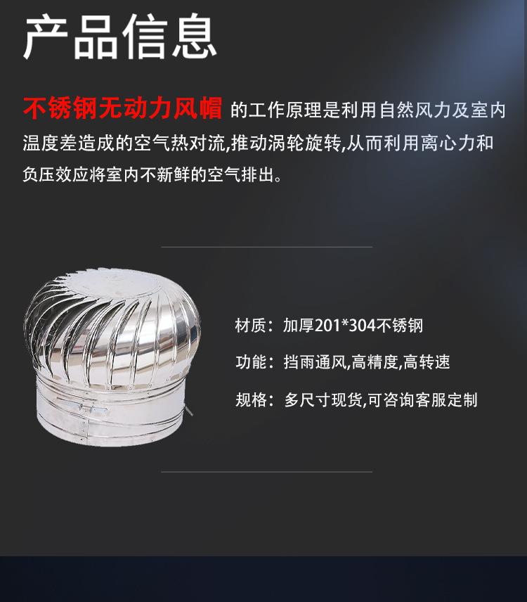 Acero inoxidable 304 ventilador de techo de bola de viento sin motor fábrica ventilador campana de ventilación tubo de escape de humos casa de cerdos