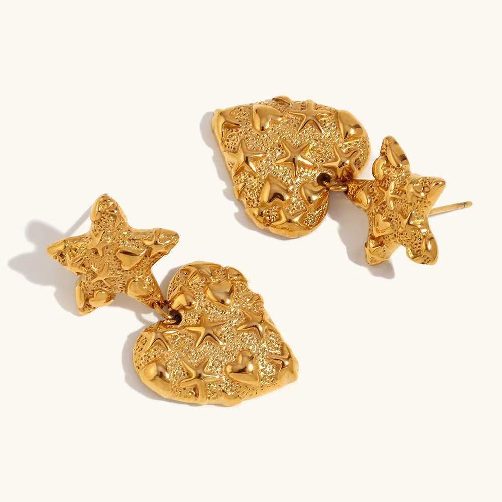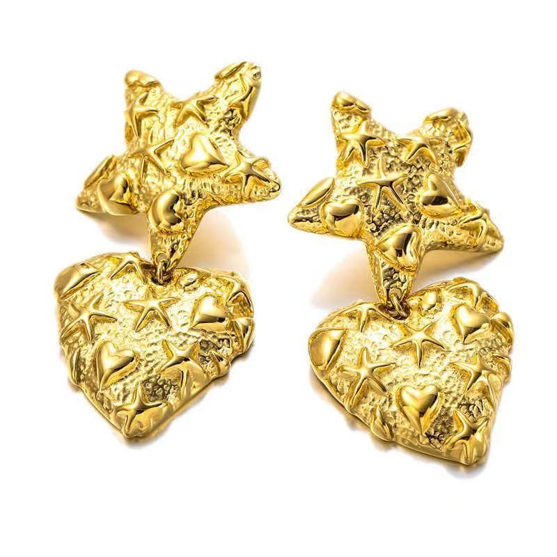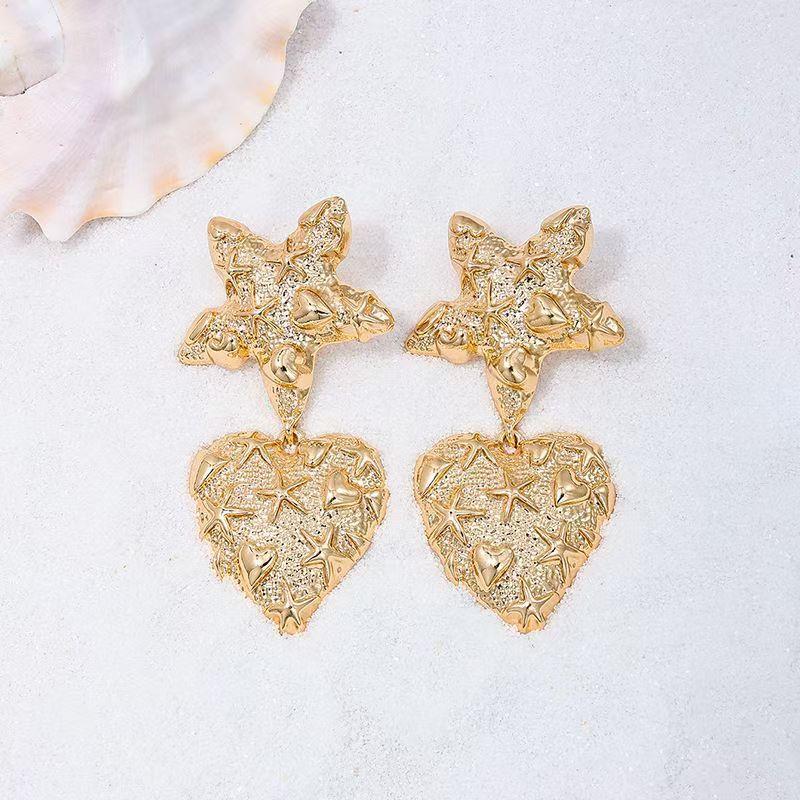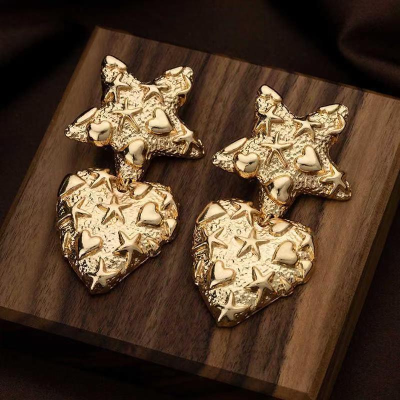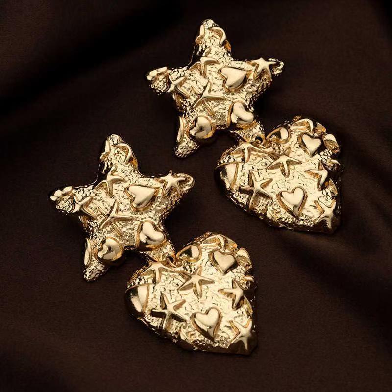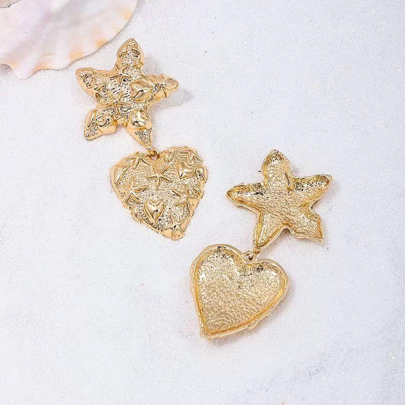 Aretes Europeos y Americanos Exagerados de Metal Estrella Corazón para Mujer Aretes Versátiles de Moda para Vacaciones al por Mayor