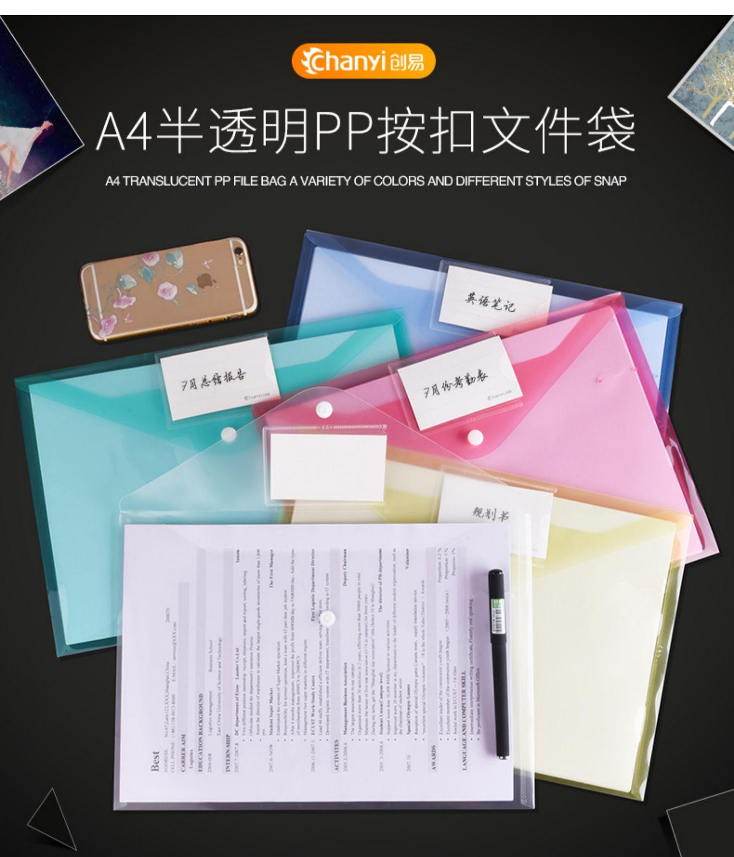 50 piezas de bolsa de archivo a4 de plástico transparente con broche, bolsa gruesa de gran capacidad para guardar papeles de examen de estudiantes zb