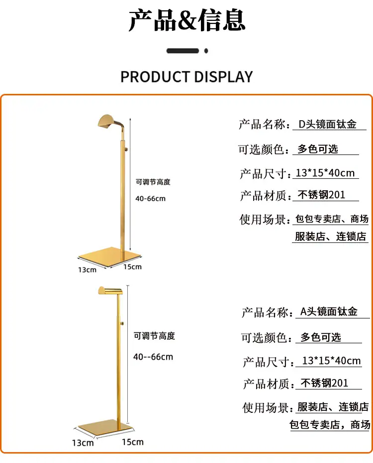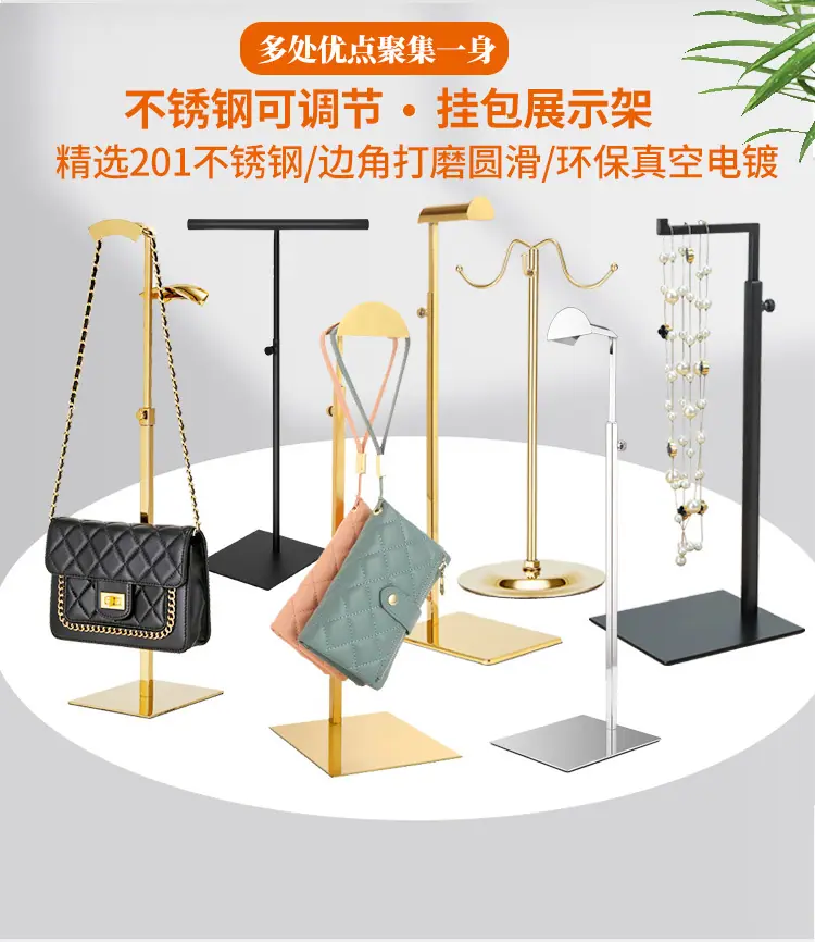 Nuevo Soporte de Exhibición de Bolsa Colgante Soporte de Bolsa Ajustable Estante para Bolsas Accesorios de Exhibición Tienda de Bolsas Acero Inoxidable Soporte de Exhibición para Bolsos