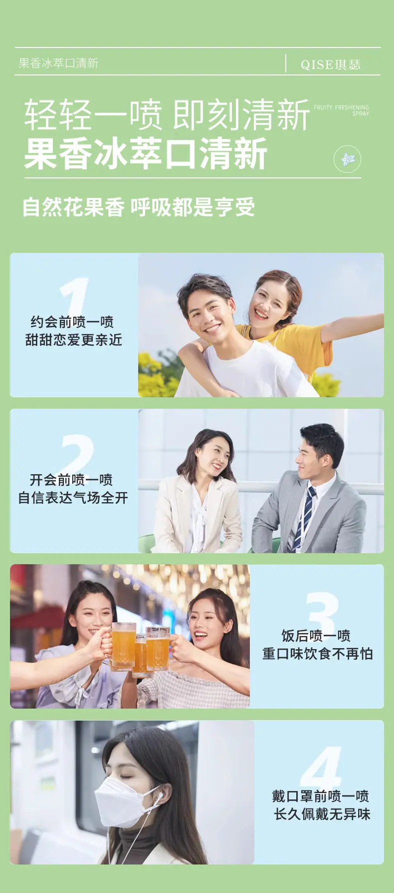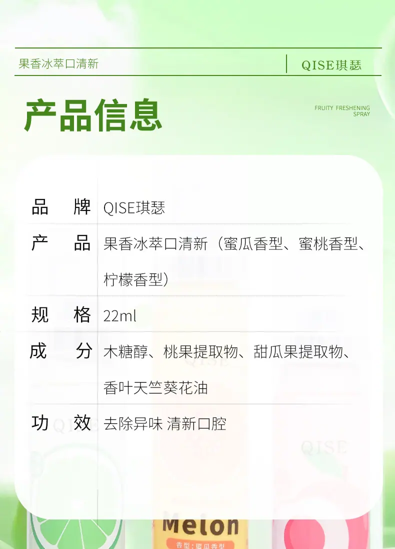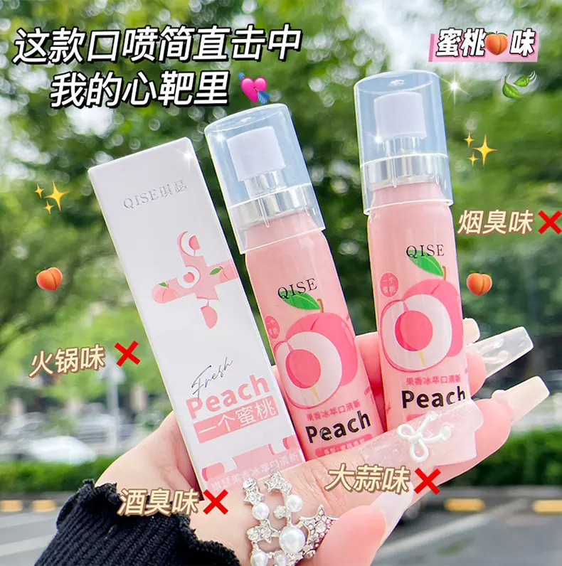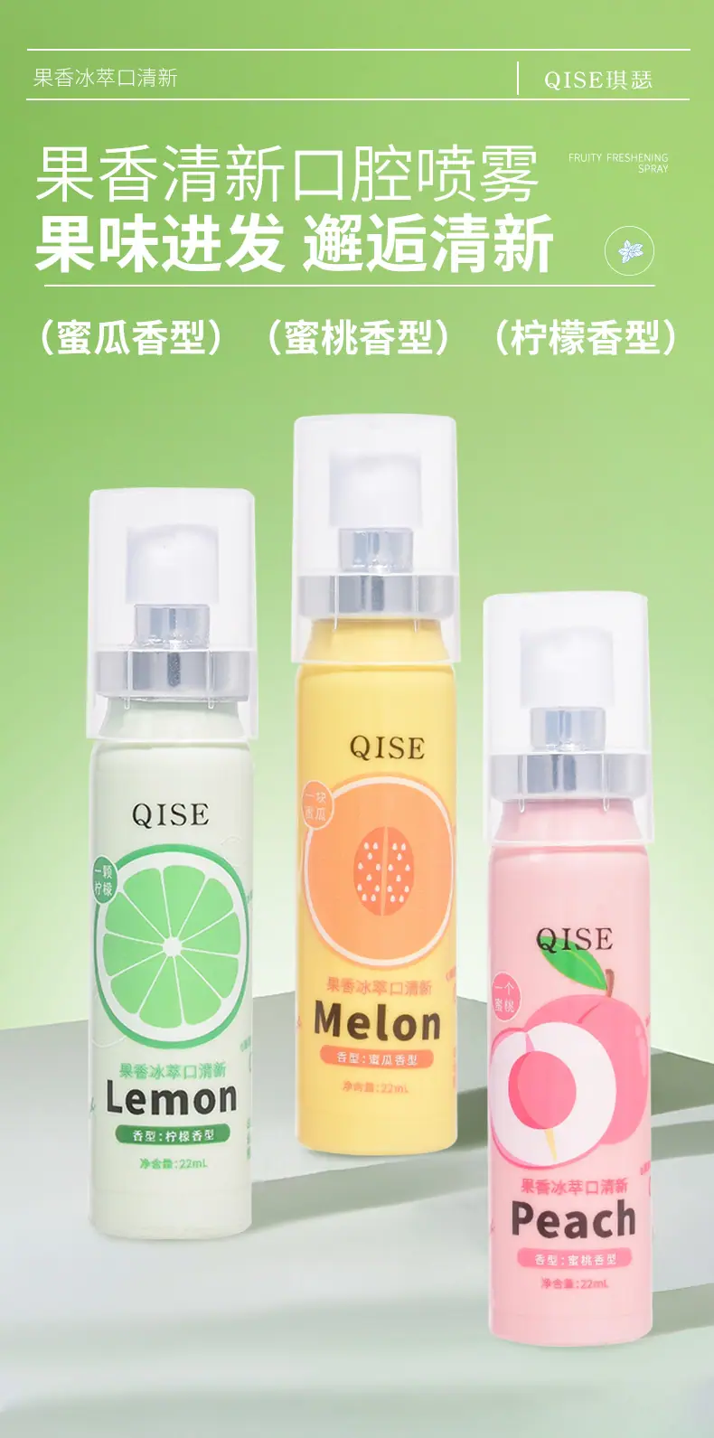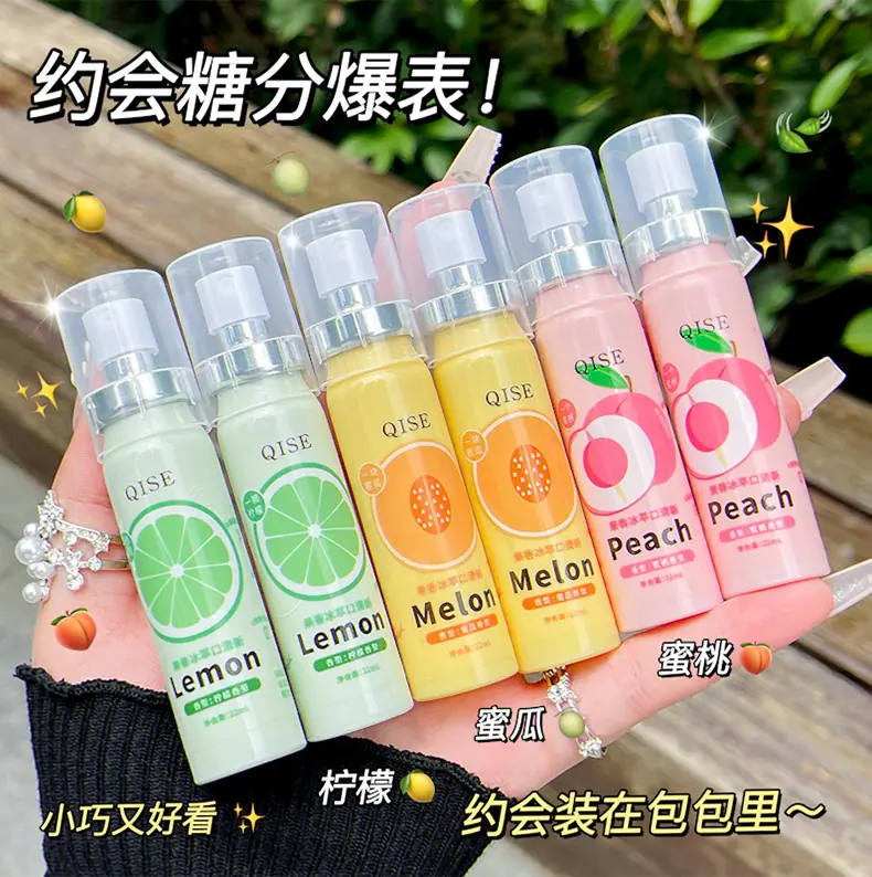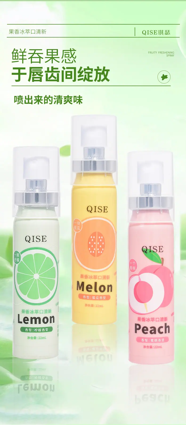 TikTok mismo estilo Qise fragancia frutal refrescante bucal helado aroma melón dulce limón durazno fragancia duradera spray bucal en stock