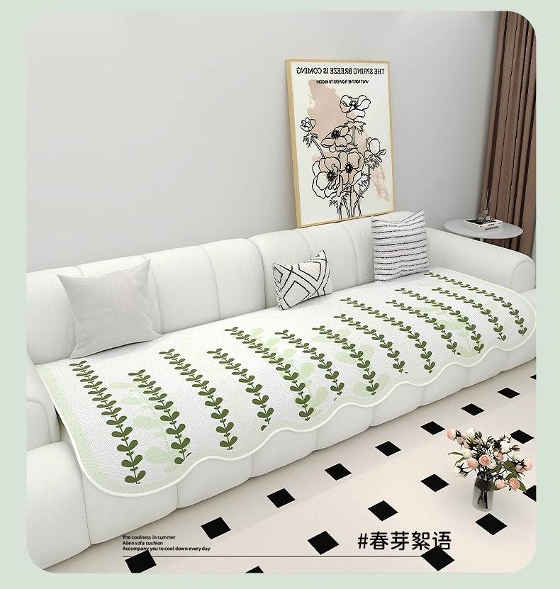 2025 Nuevo Cojín de Sofá Verano Seda de Hielo Alfombra de Sofá Cojín Fijo Antideslizante Cojín Fresco Tela de Cubierta Universal