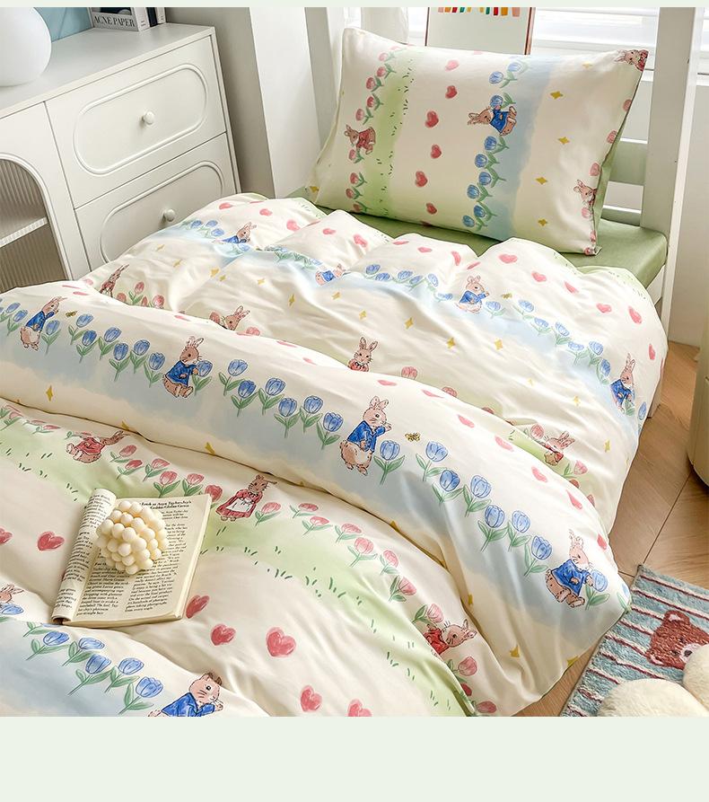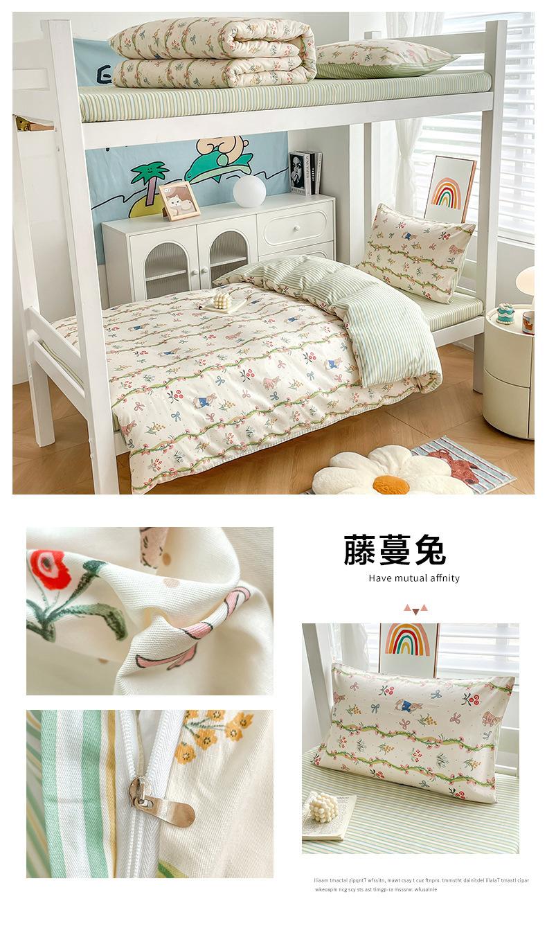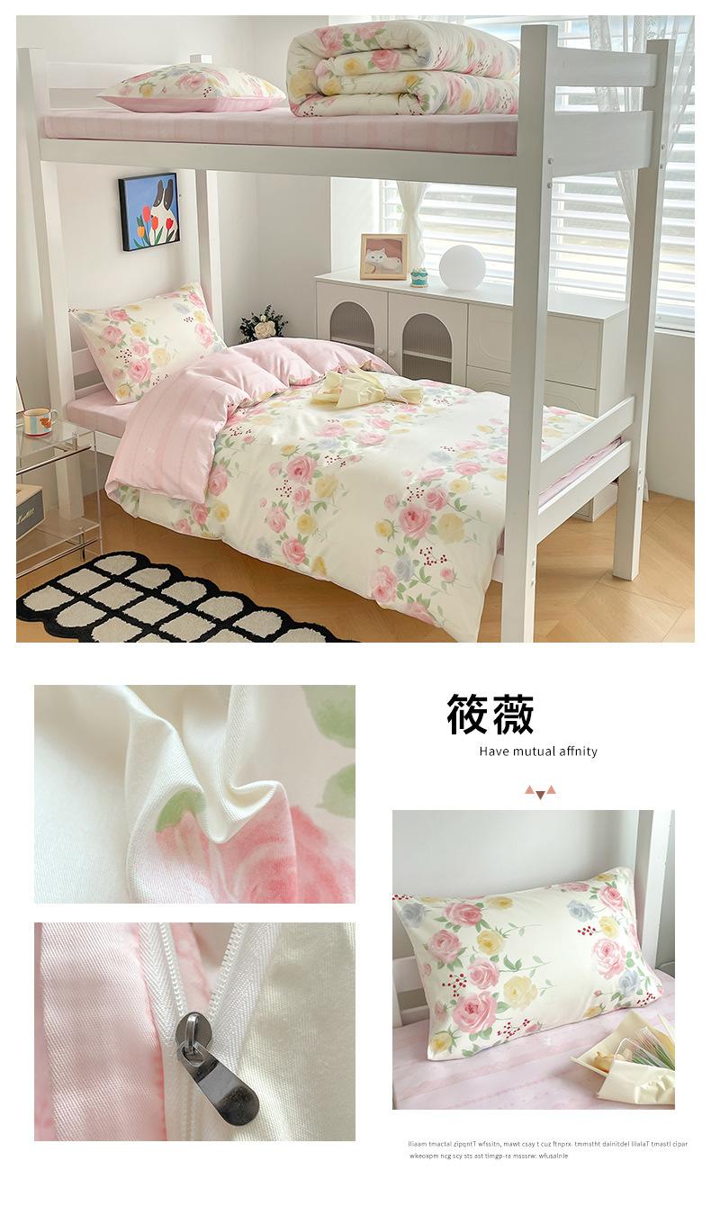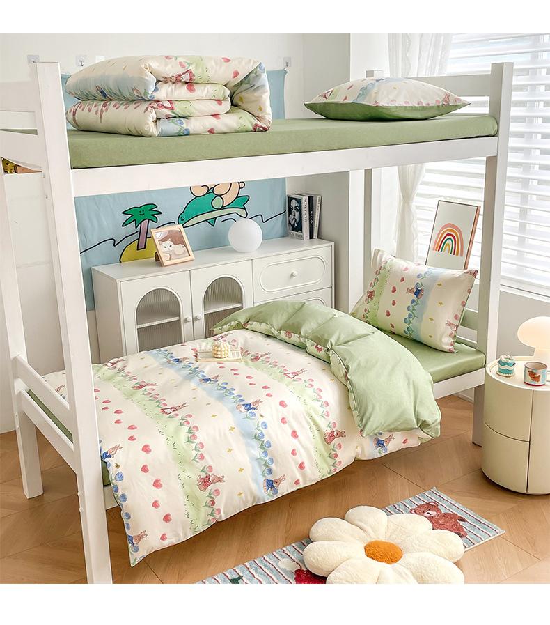 2025 Nuevo Estilo Pequeño Fresco Algodón Estampado Juego de Cuatro Piezas Dormitorio de Estudiantes Juego de Tres Piezas Unidad Ropa de Cama
