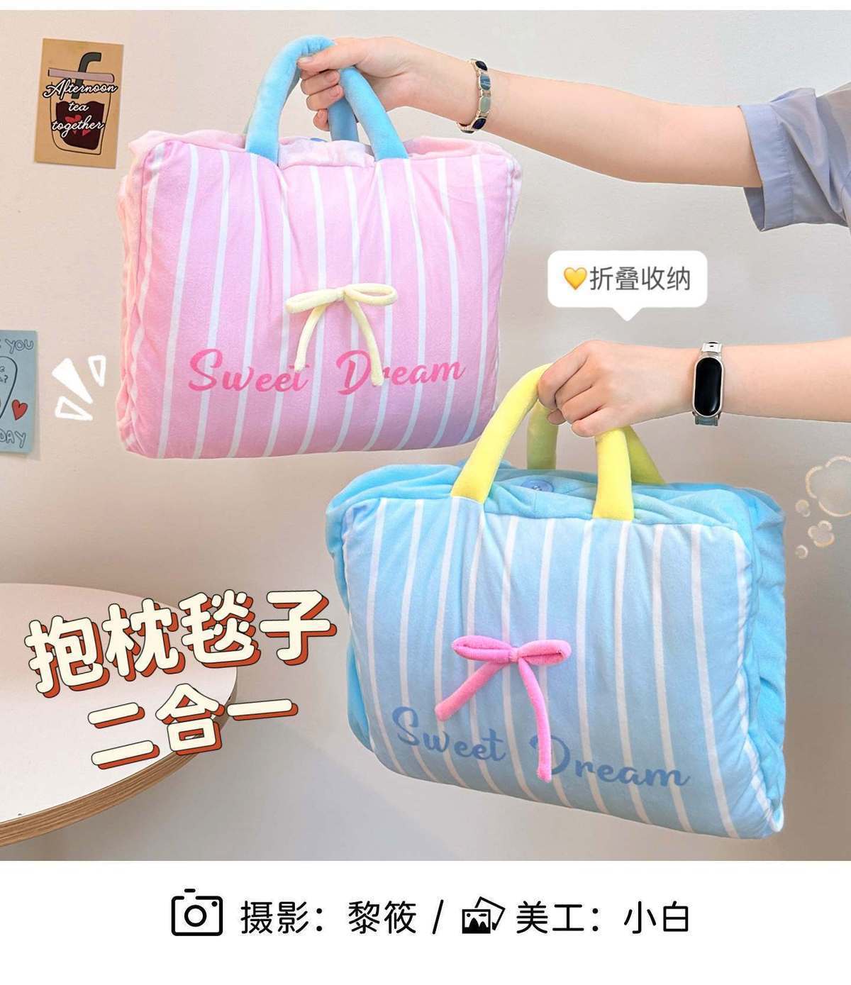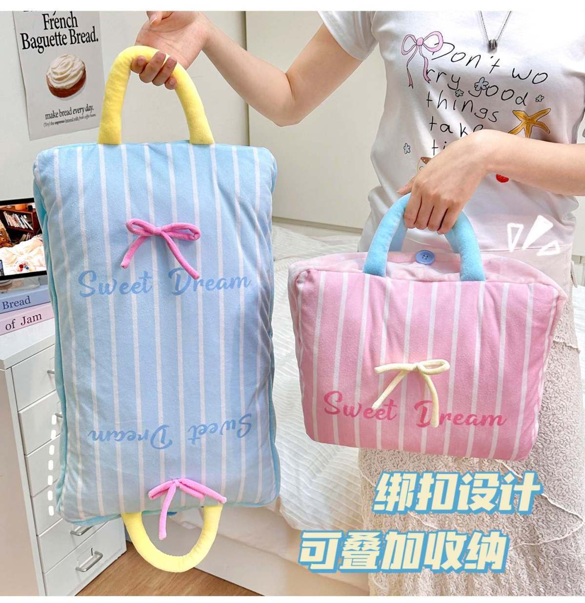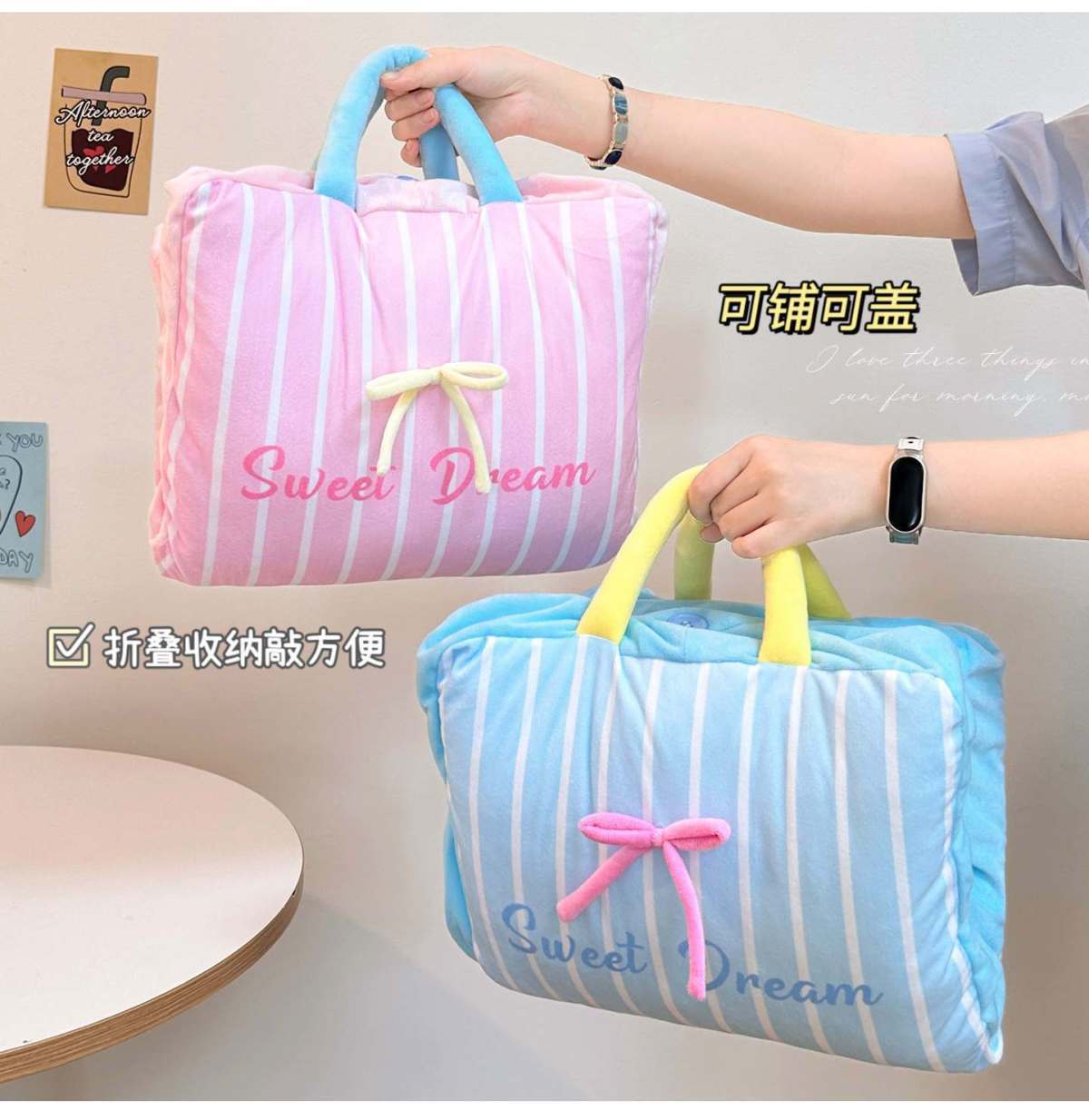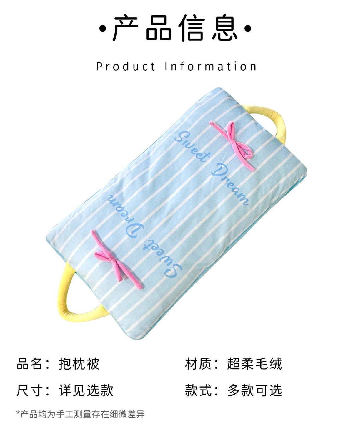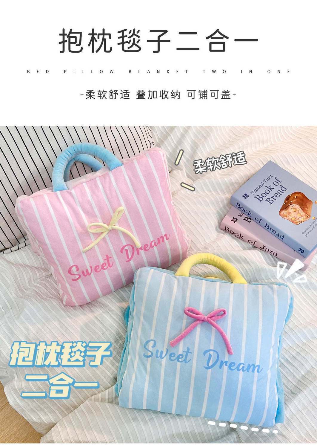 【Pink】Bow Stripe Throw Pillow Blanket, 【Blue】Bow Stripe Throw Pillow Blanket