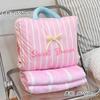 【Pink】Bow Stripe Throw Pillow Blanket