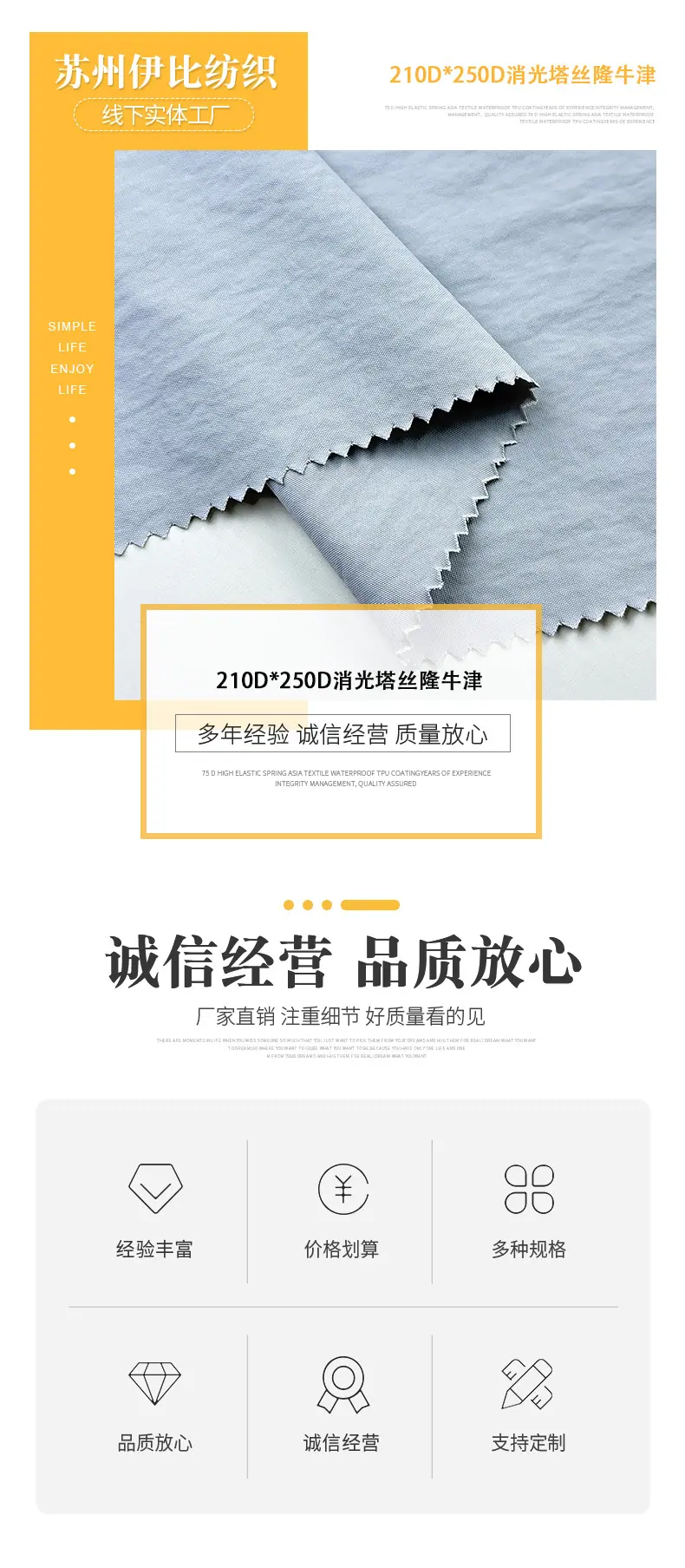 Chaqueta 210D*250D Oxford Taslan Mate Cortaviento, Impermeable y a Prueba de Frío Tejido para Traje de Esquí