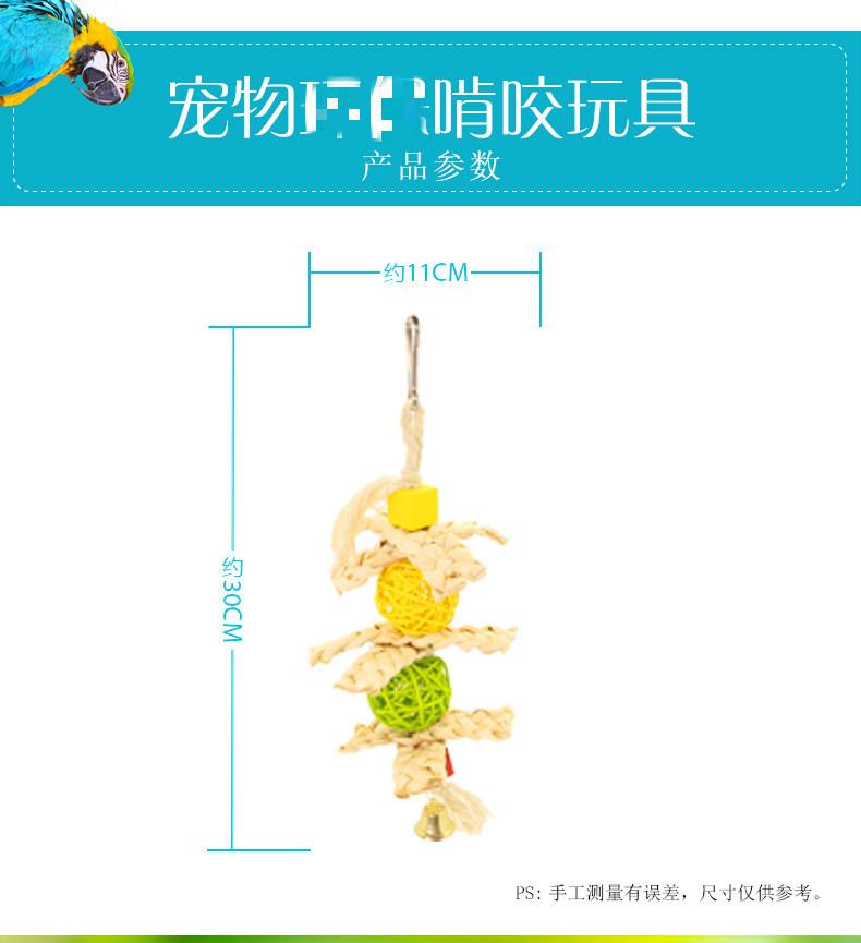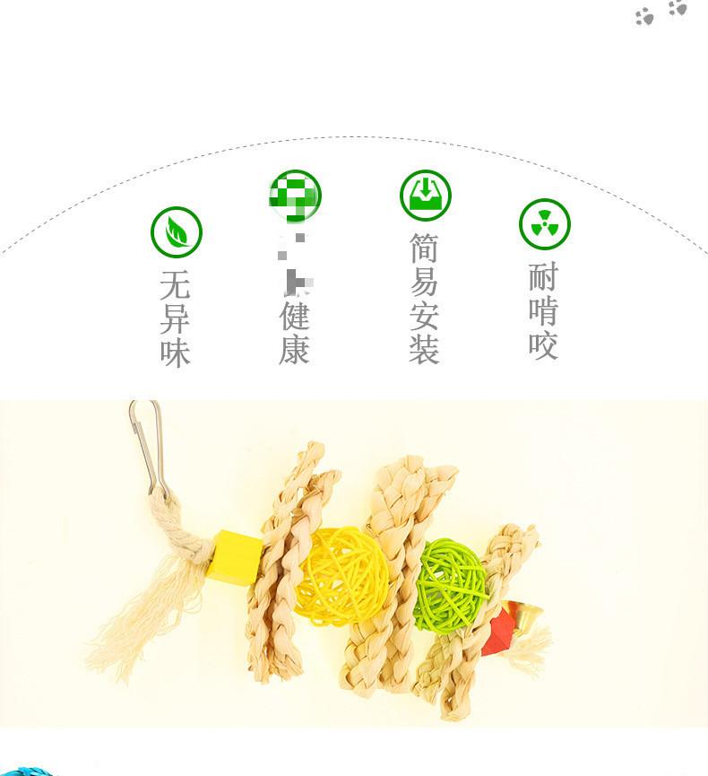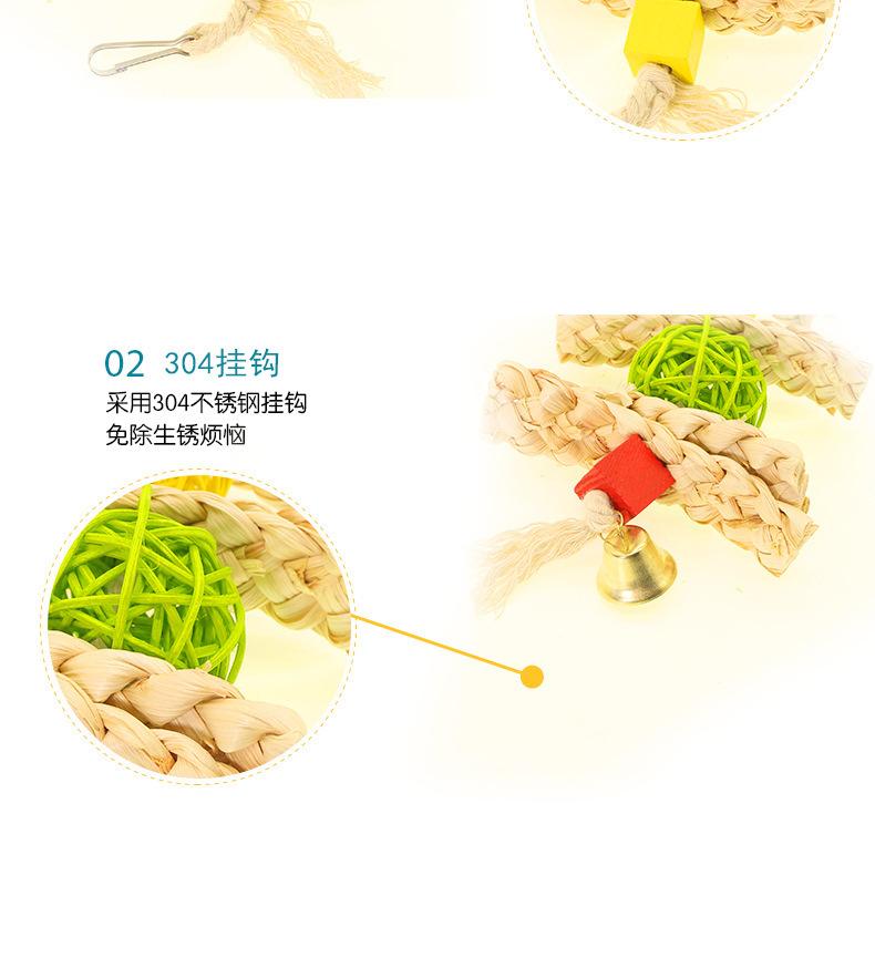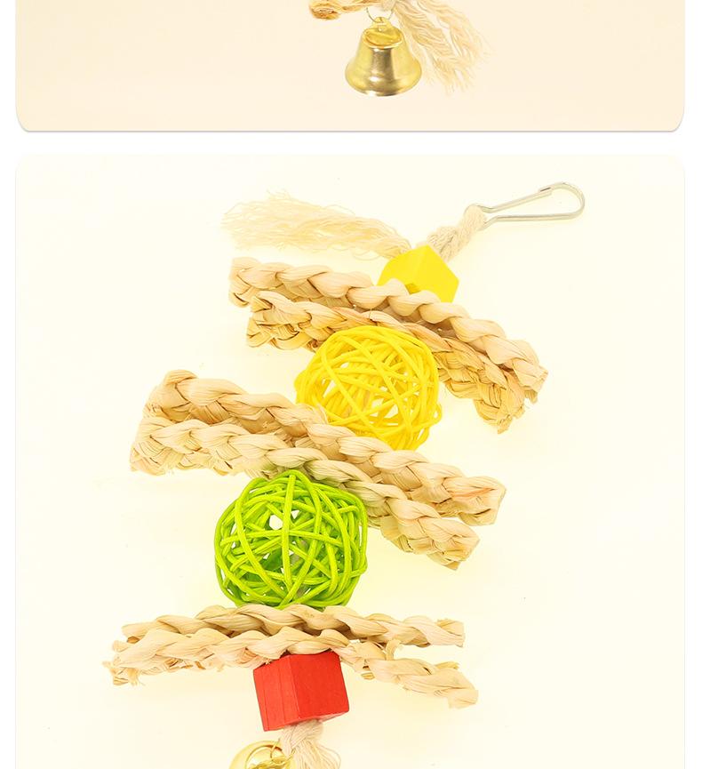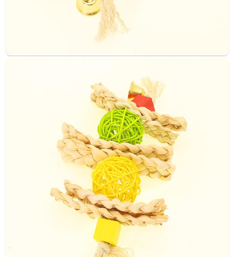 Cuerda de Juguete para Morder de Loro Aves Mascota Cuerda de Algodón Cuadrado Cuerda para Morder Colgante de Jaula Bola de Mimbre de Paja Campana Juguete para Aves