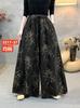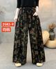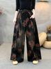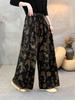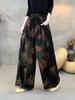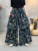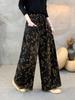 Otoño Temprano Nuevo Literario Retro Suelto Talla Grande Estampado Pantalones Pierna Ancha Cintura Elástica Suelto Adelgazante Pantalones Casuales Venta al por Mayor