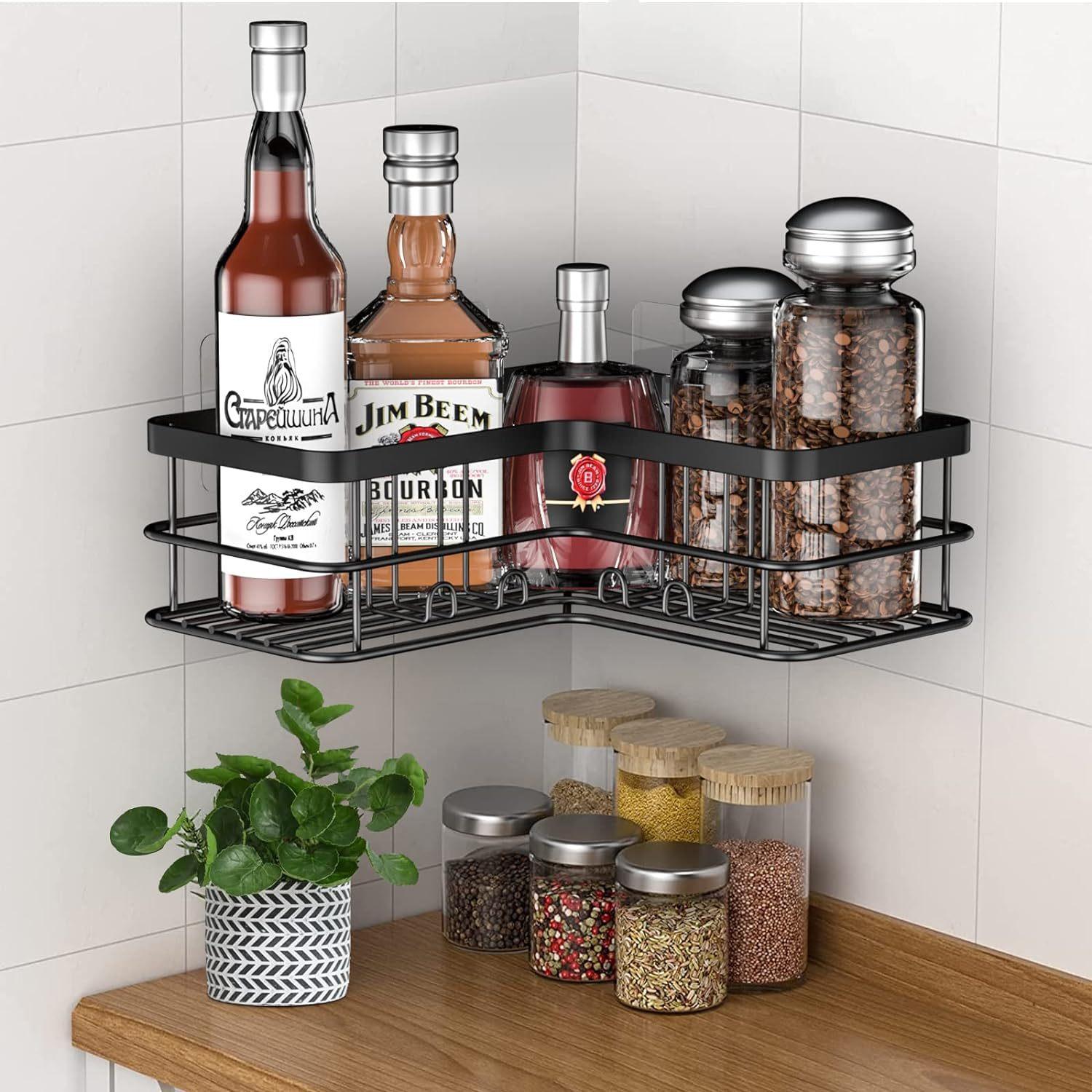 Nuevo estante de almacenamiento para baño sin perforaciones transfronterizo, estante de almacenamiento de esquina montado en la pared, estante de almacenamiento para artículos de tocador de baño