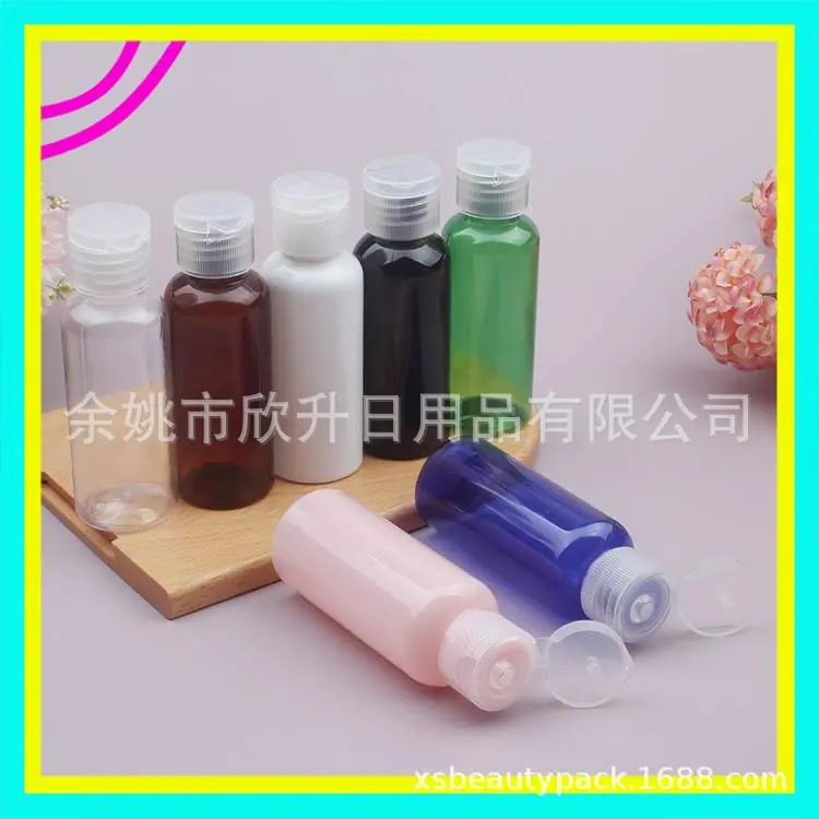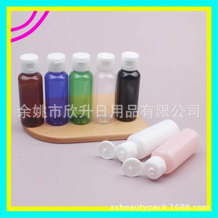 Botella de champú de 50 ml con tapa abatible, botella dispensadora de jabón para platos, botella PET de 50 ml de hombros redondos con tapa abatible, botella de jabón para manos, botella de rocío puro