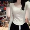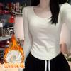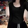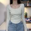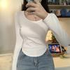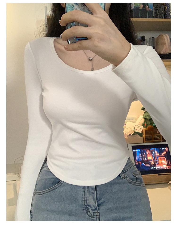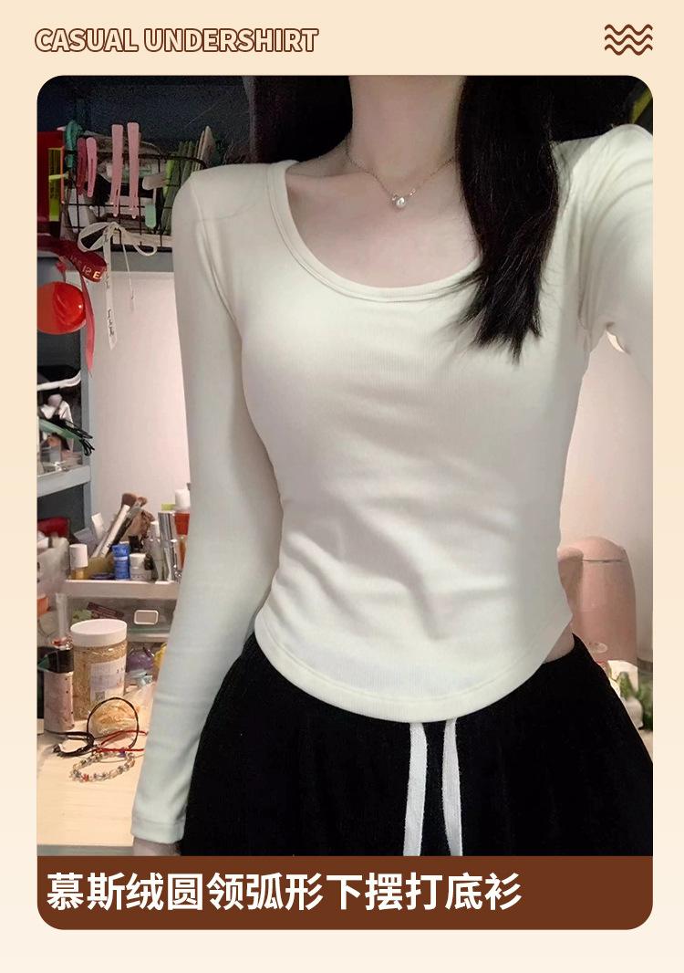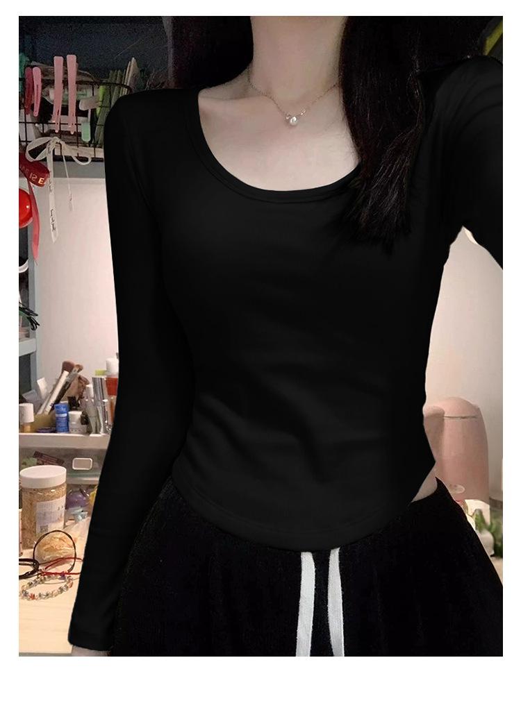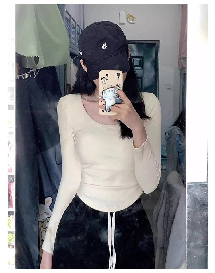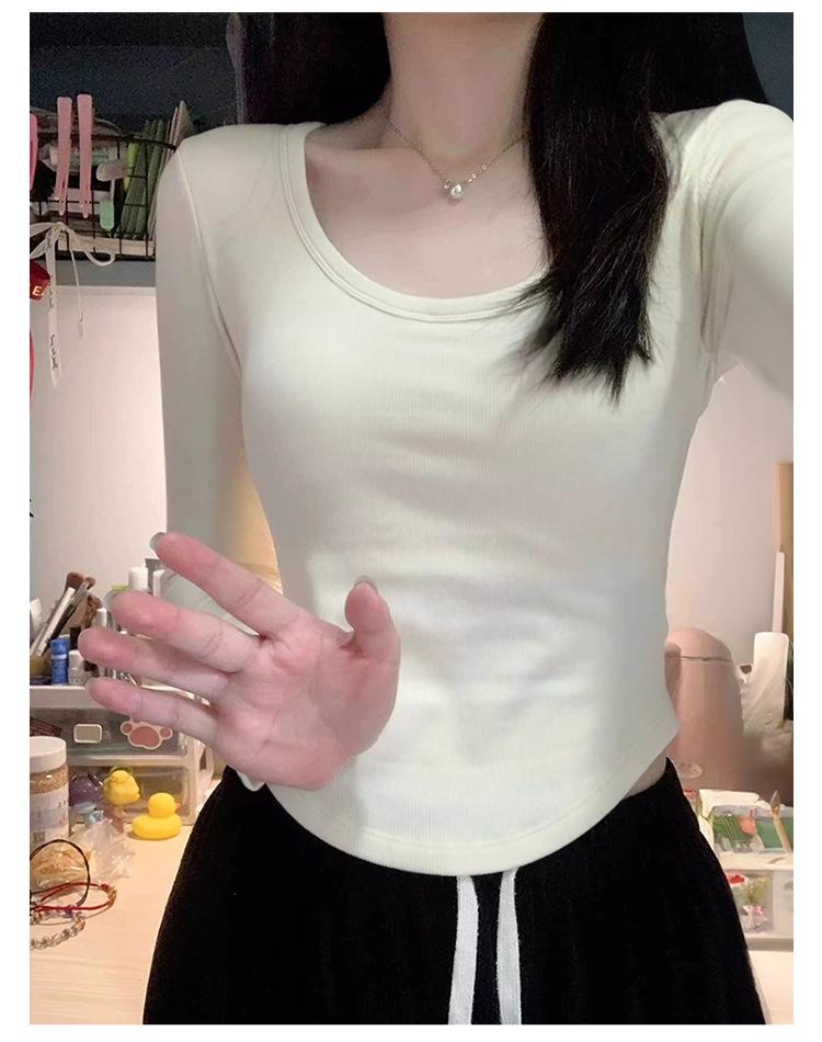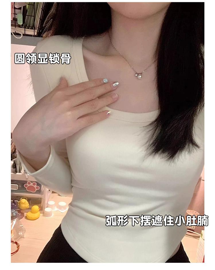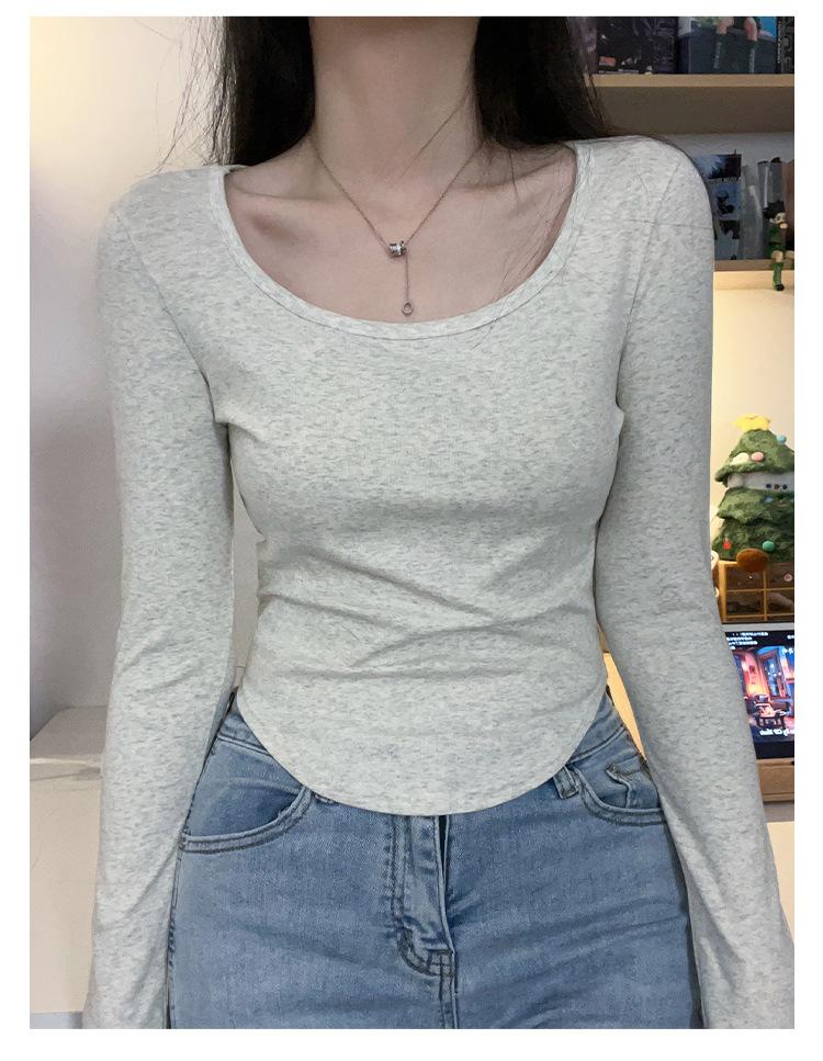 Camiseta básica de hombro recto personalizada para mujer 2025 otoño/invierno nueva ajuste ceñido y adelgazante ropa interior top corto de chica sexy camiseta de manga larga