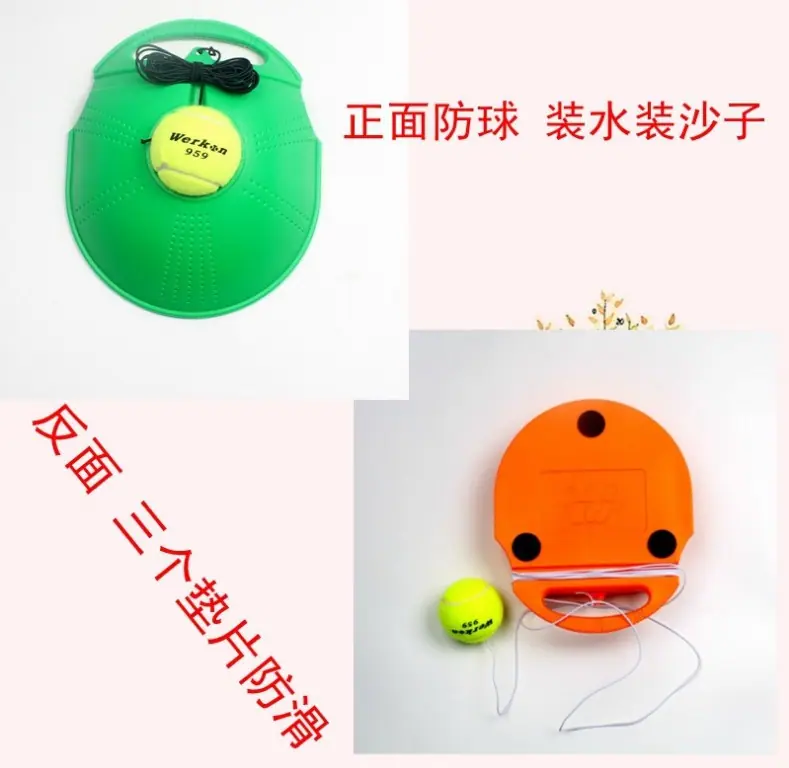 Descripción del producto: Se puede llenar con agua, es fácil de llenar y verter, ligero y duradero. La base del dispositivo de entrenamiento se puede usar con una pelota de tenis con alambre. El peso de la base después de llenarla con agua es de aproximadamente 1 kg.