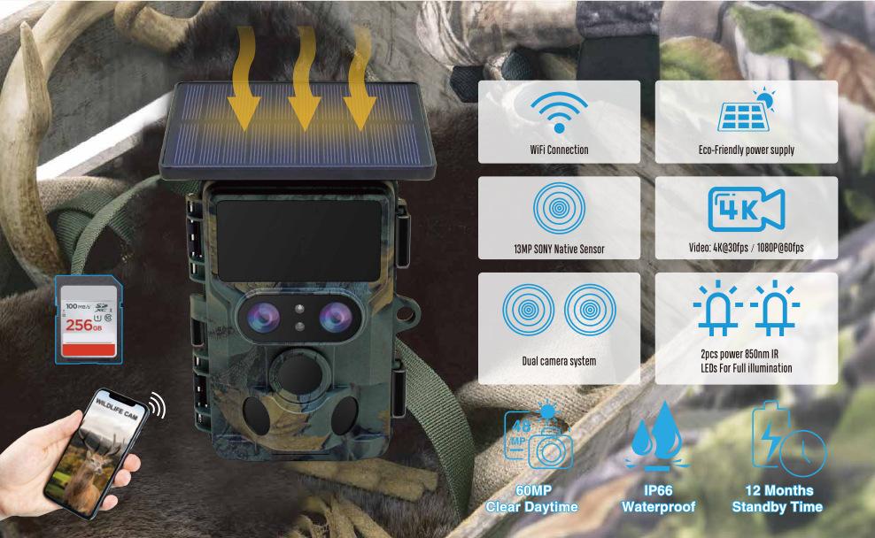 Fuente de alimentación: panel solar (batería de litio de 4400 mAh); 8 pilas AA;