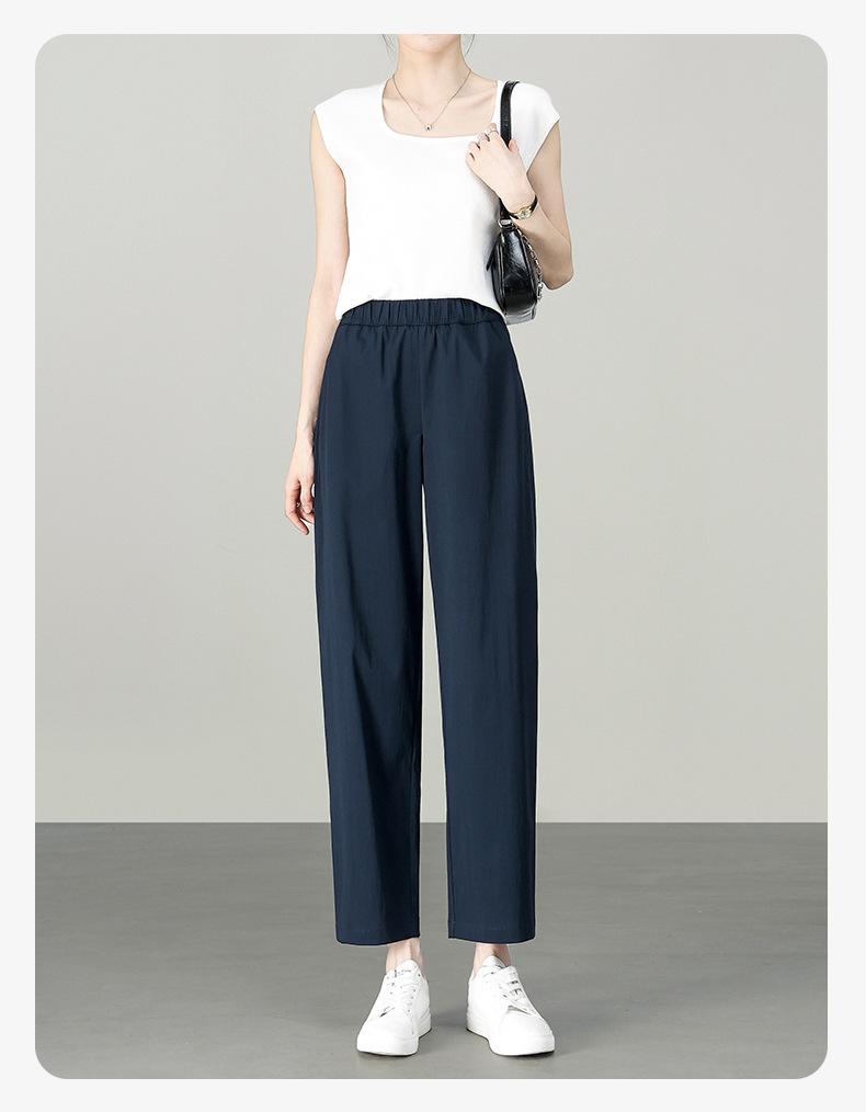 Pantalones Harem Casuales de Pierna Ancha para Mujer 2025 Petite Nuevo Verano Delgados Nueve Puntos Pantalones Cintura Alta Sueltos Adelgazantes