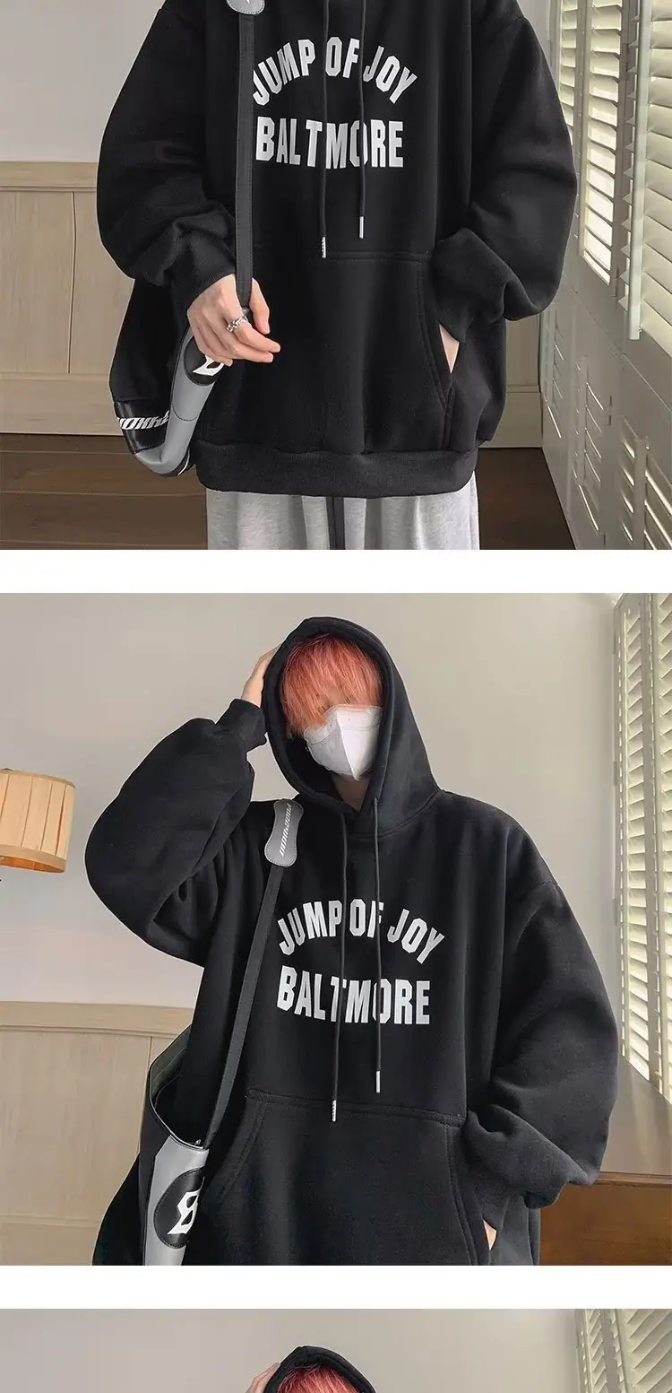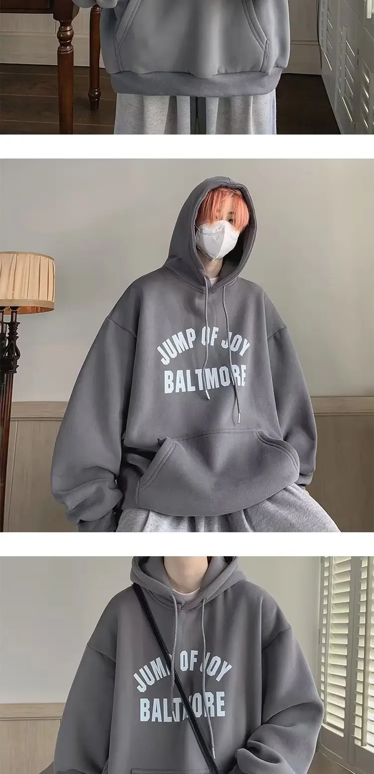 Sudadera con capucha retro americana 2023 para hombre, primavera y otoño, además de terciopelo grueso, chaqueta de marca de moda hip-hop de gran tamaño
