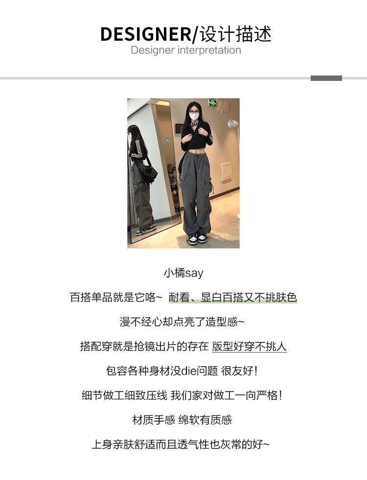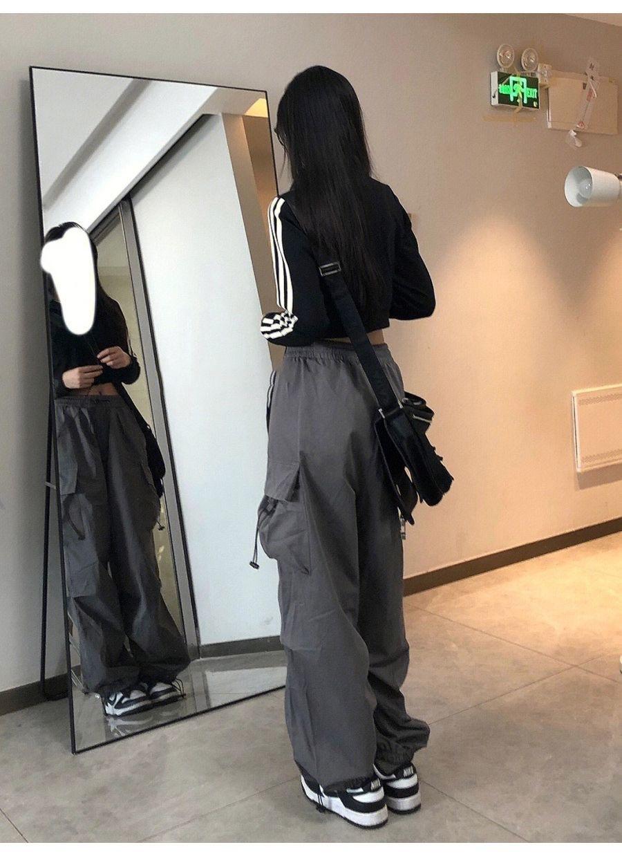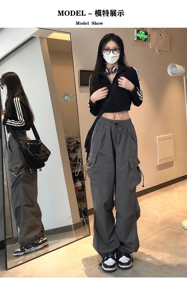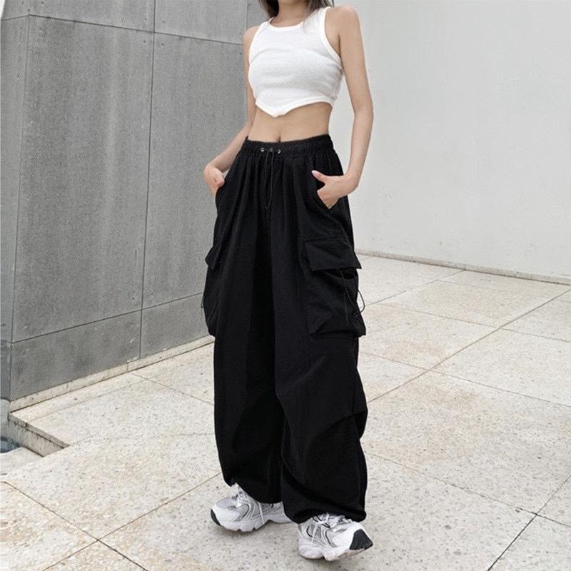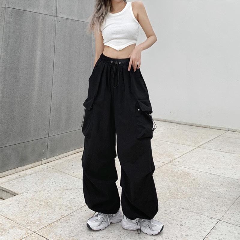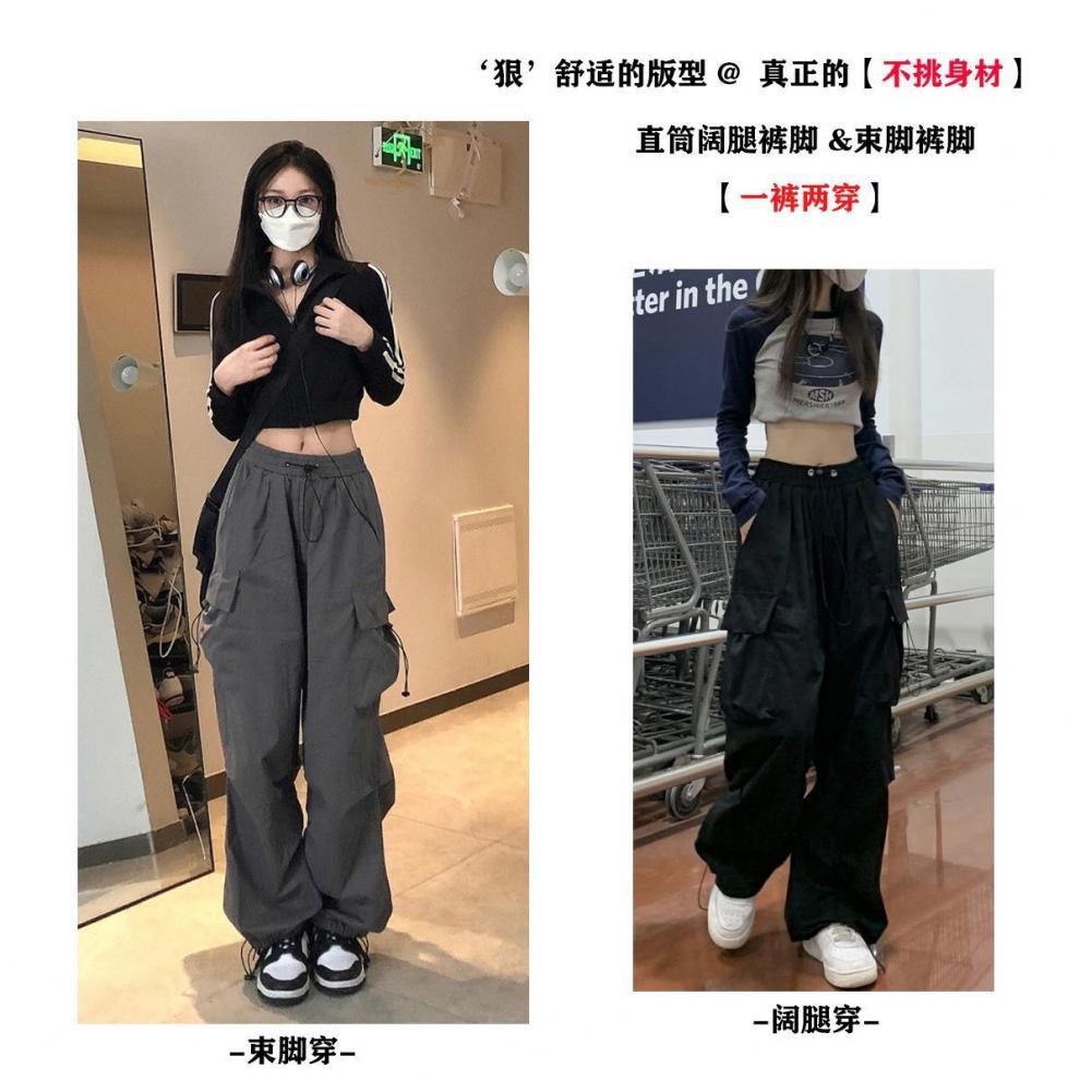 Pantalones cargo de calle de hiphop americano para mujer Verano Delgados de pierna recta sueltos con múltiples bolsillos con solapa Pantalones deportivos casuales