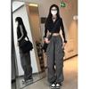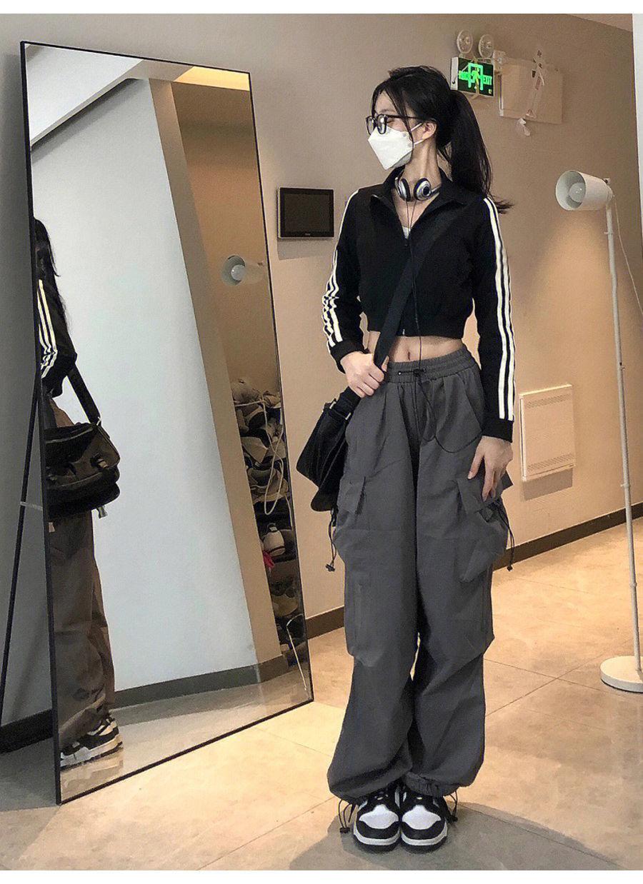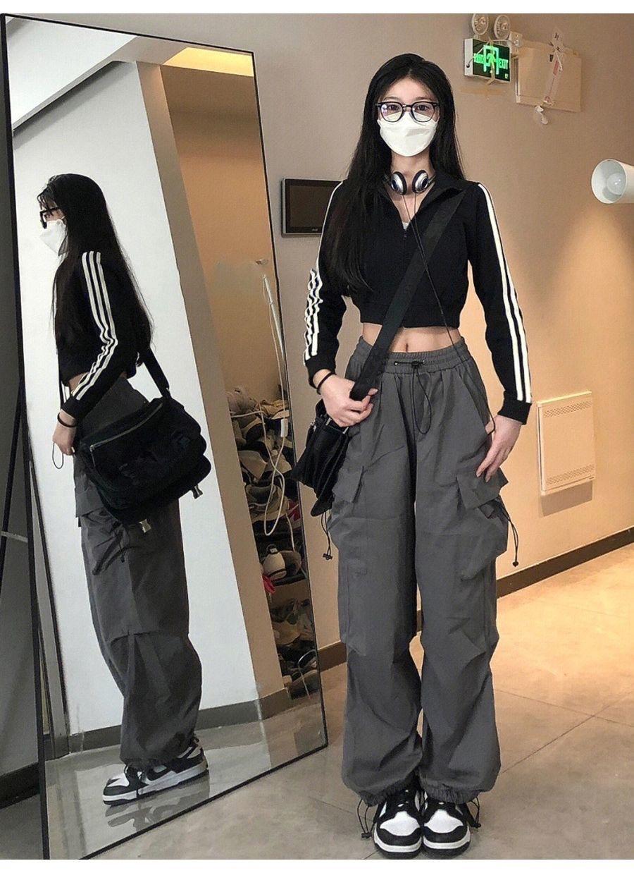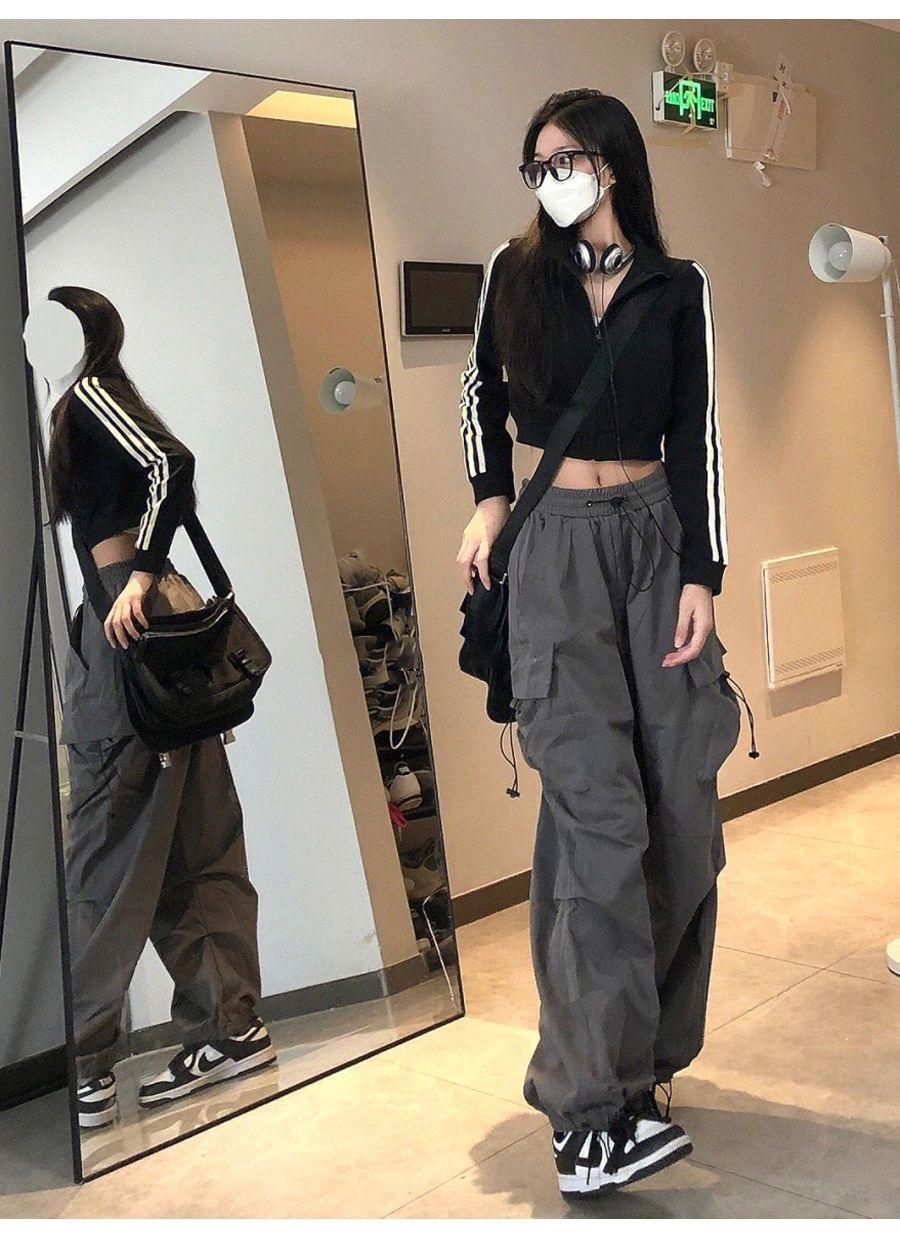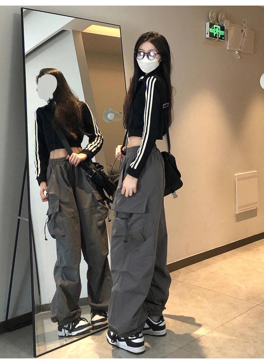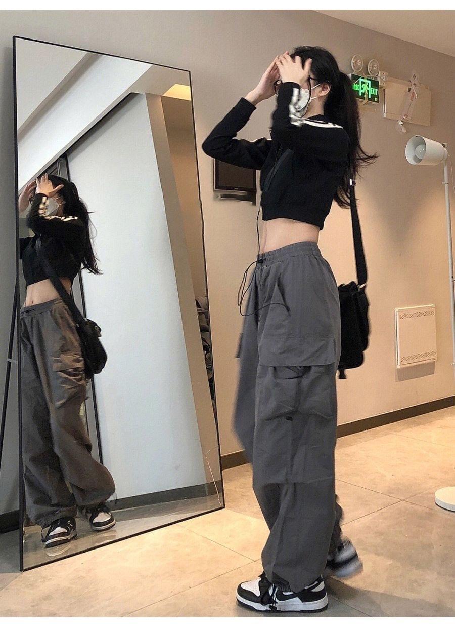 Pantalones cargo de calle de hiphop americano para mujer Verano Delgados de pierna recta sueltos con múltiples bolsillos con solapa Pantalones deportivos casuales