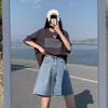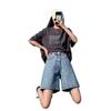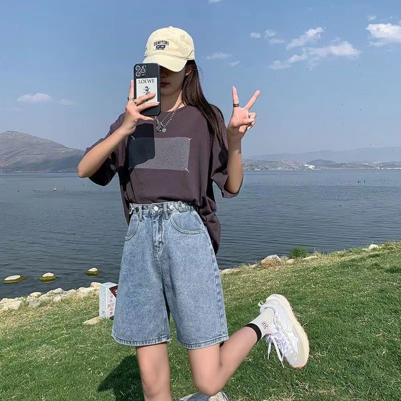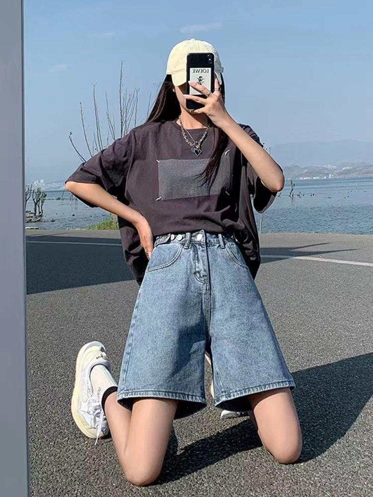 Compra Shorts de mezclilla de cinco puntos para mujer Verano 2024 Nuevo ins Cintura alta Slim Sueltos Pierna ancha Pantalones para personas pequeñas al por mayor en Joom.pro