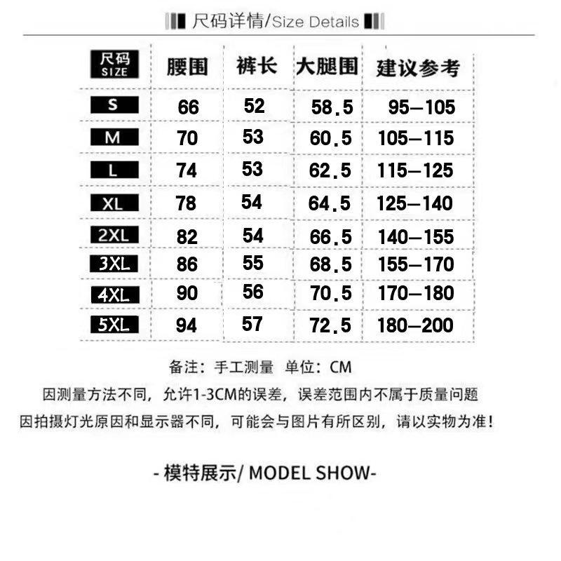 S 90-105, M 105-115, L 115-125, XL 125-140, 2XL 140-155, 3XL 155-170, 4XL 170-180, 5XL 180-200